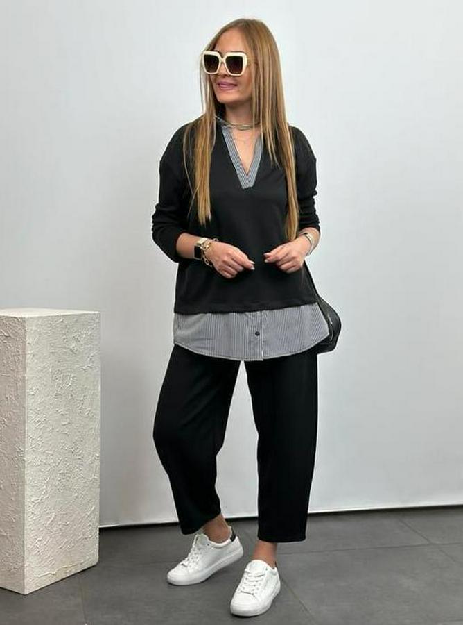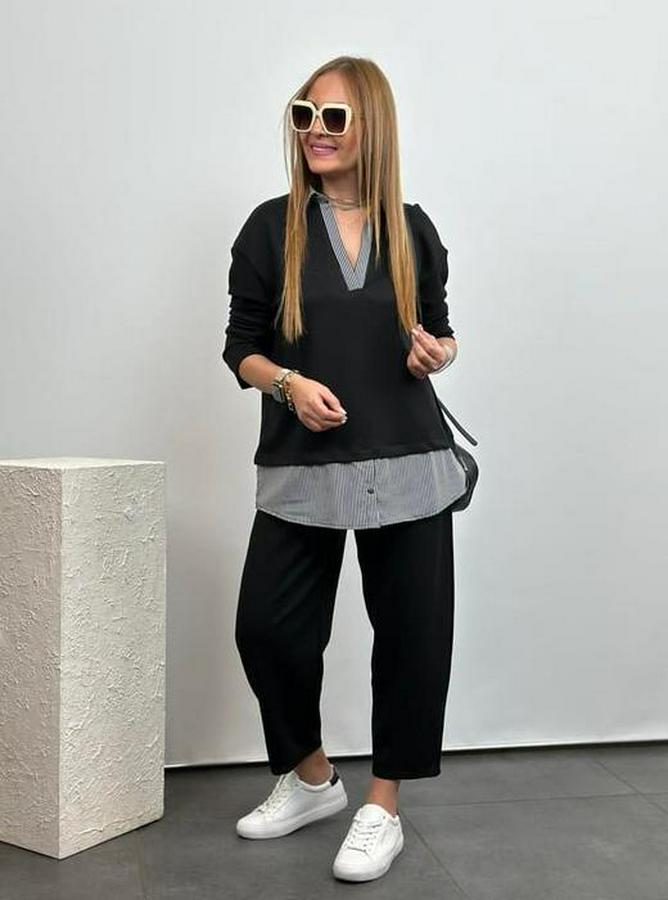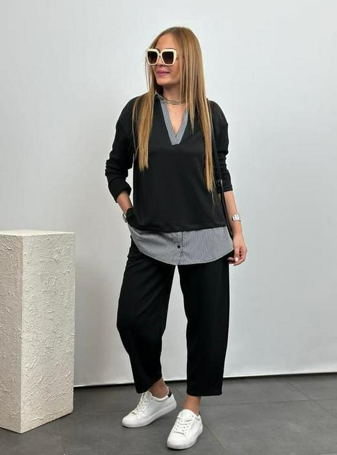 Polo Yaka Gömlek Detay Salaş Balon Pantolunlu ıkılı Takım