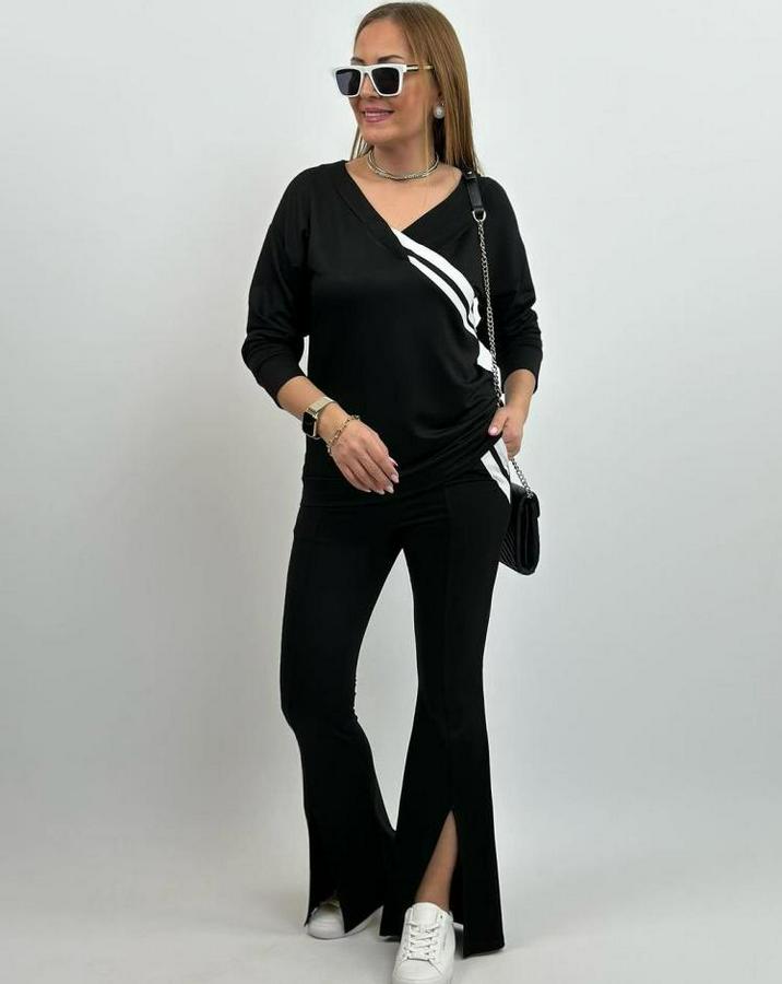 Ribana Detay Bluz Ve Ispanyol Paça Yırtmaçlı Pantolon Ikili Takım
