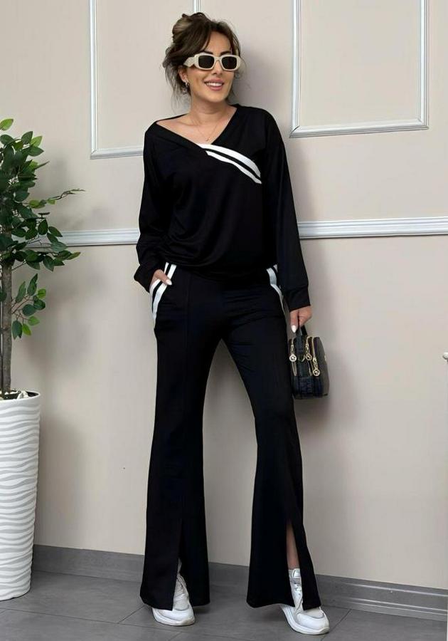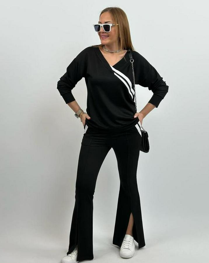 Kadın Ribana Detay Bluz Ve Ispanyol Paça Yırtmaçlı Pantolon Ikili Takım