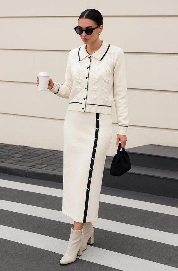 Şerit Detay Ceket Ve Etek Ikılı Takım