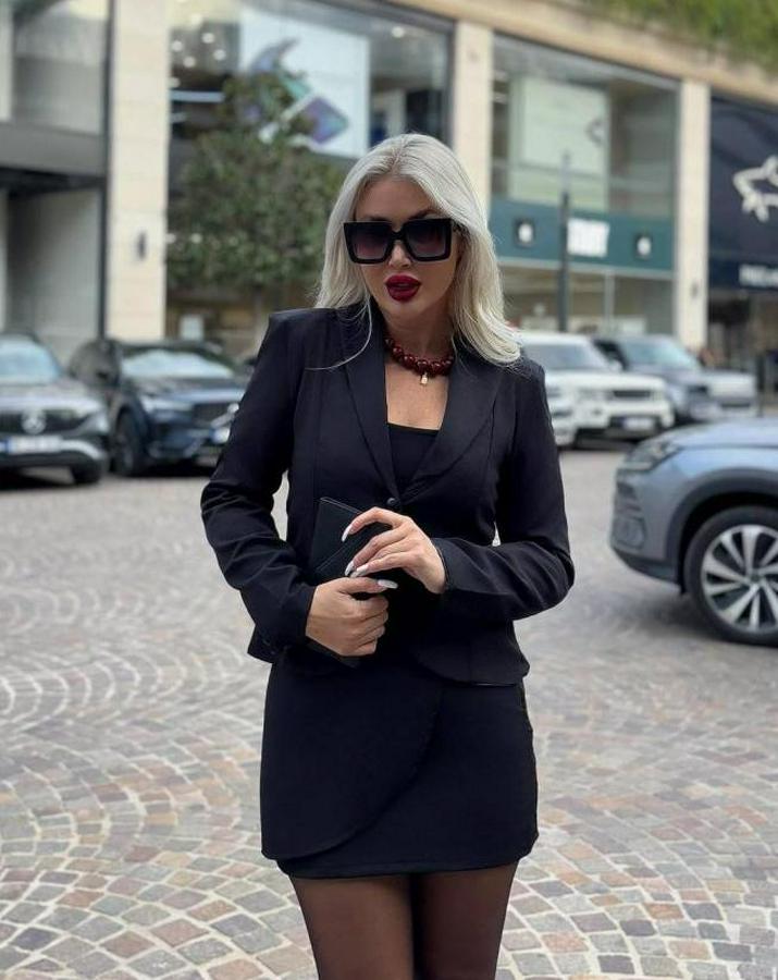 Tek Düğme Detaylı Ceket Mini Etek Ikili Takım