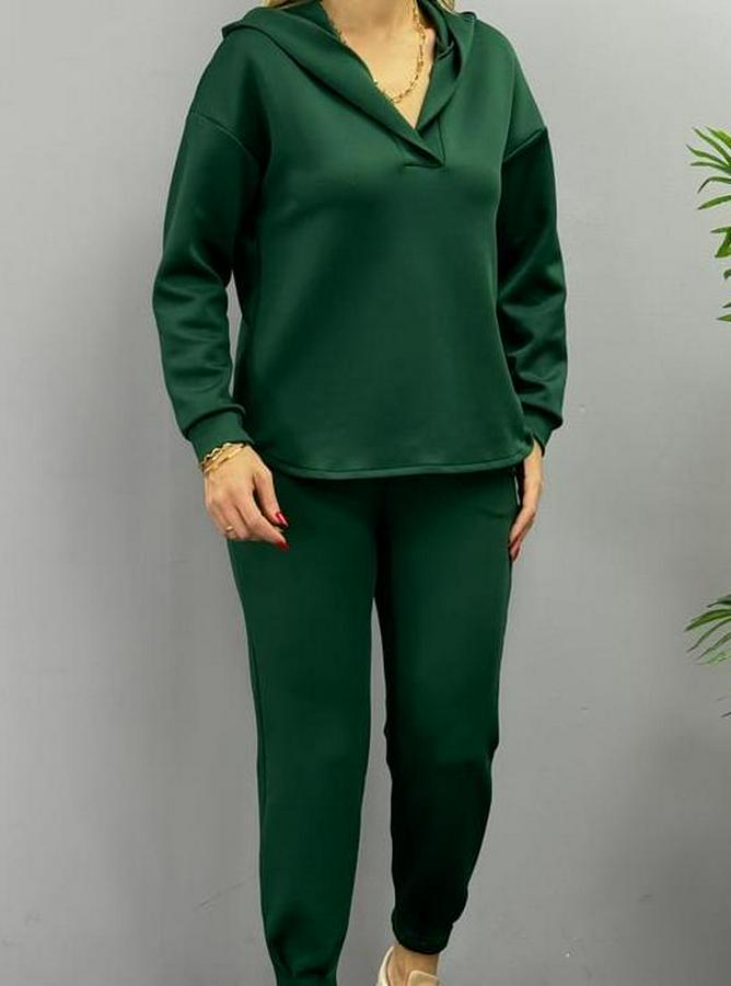Kadın Uzun Kol V Yaka Kapüşon Detay Sweat Ve Yüksel Bel Eşofman Ikili Takım