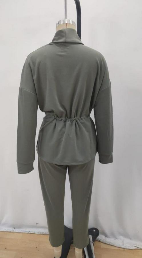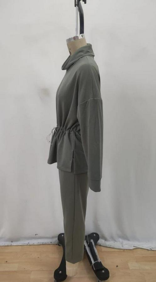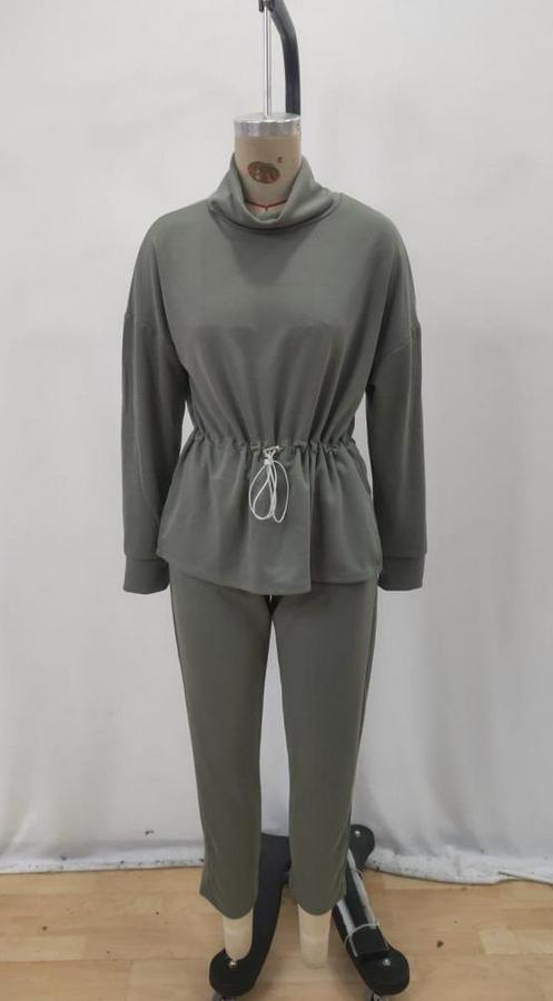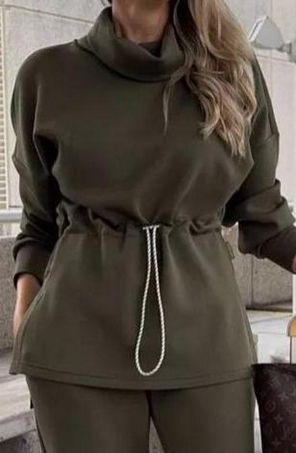 Uzun Kollu Balıkçı Yaka Belden Lastikli Modal Bluz Ve Pantolon Ikili Takım