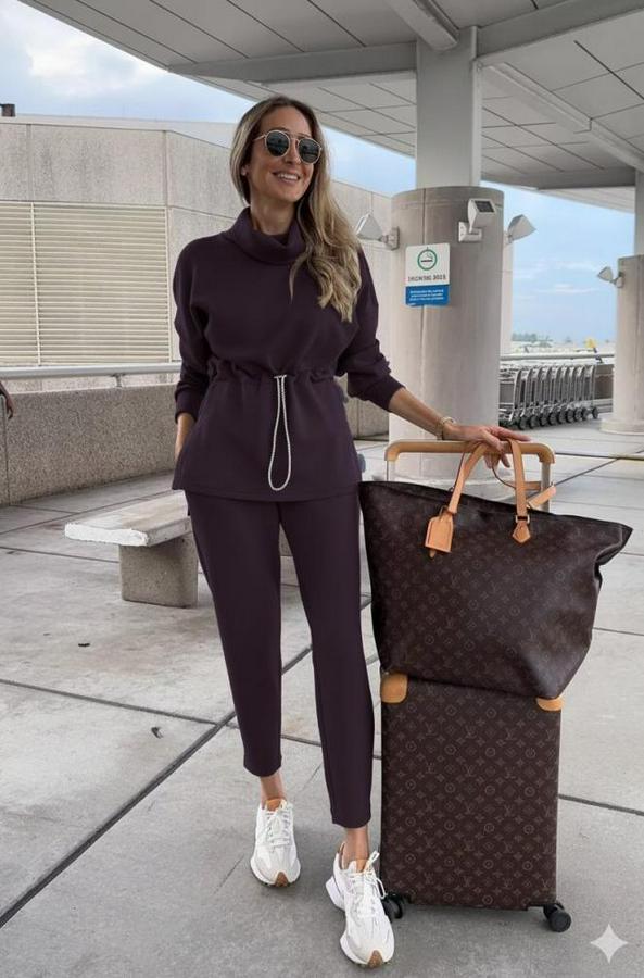 Uzun Kollu Balıkçı Yaka Belden Lastikli Modal Bluz Ve Pantolon Ikili Takım