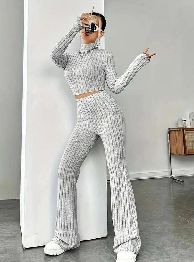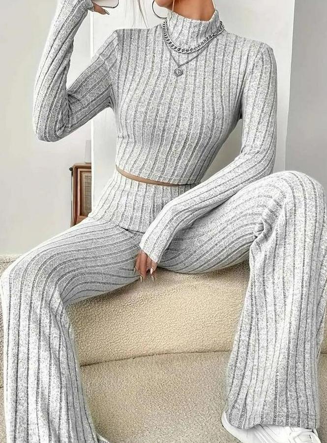 Kadın Uzun Kollu Balıkçı Yaka Krop Ve Pantolon şardonlu Kaşkorse Ikili Takım