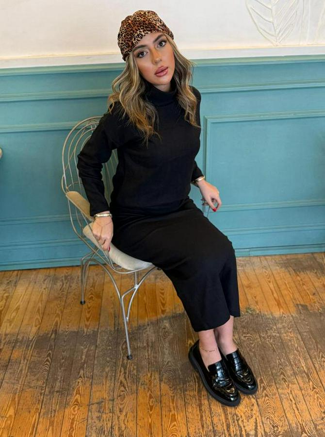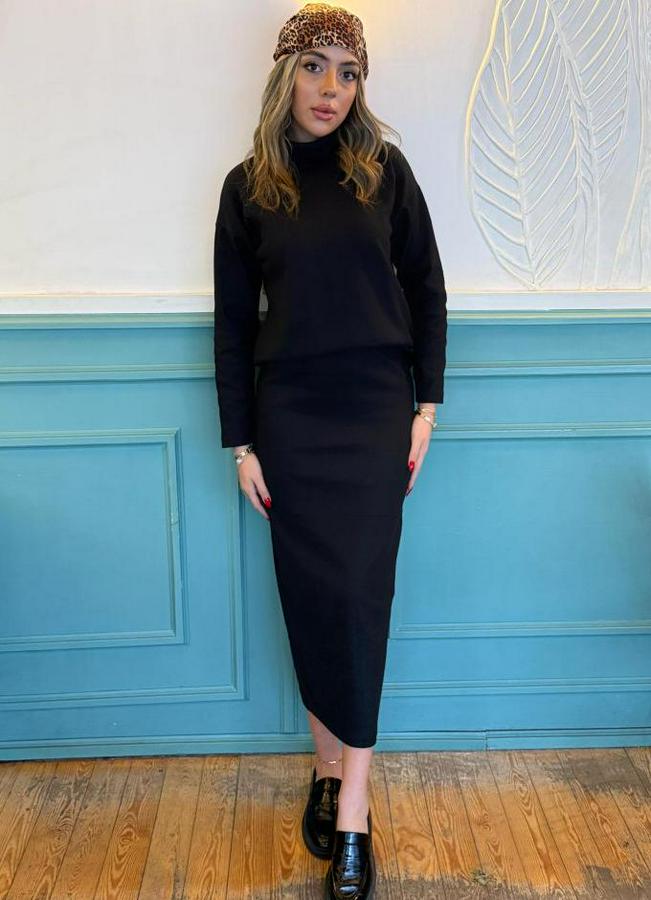 Uzun Kollu Balıkçı Yaka Şardonlu Bluz Etek Takım