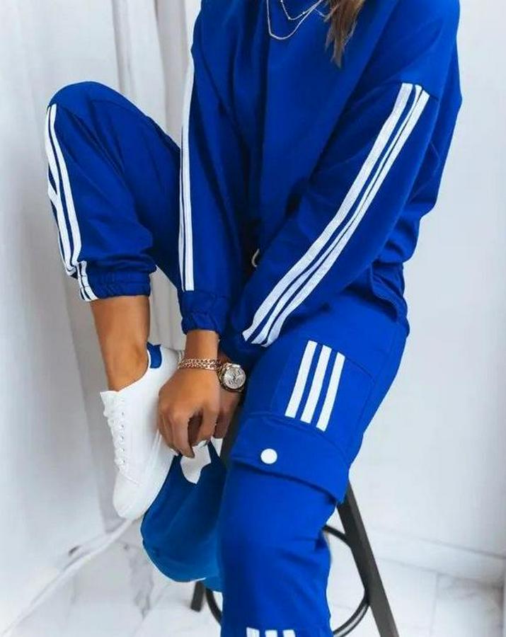 Kadın Uzun Kollu Beyaz şerit Detay Kargo Cep Iki Iplik Ikili Takım