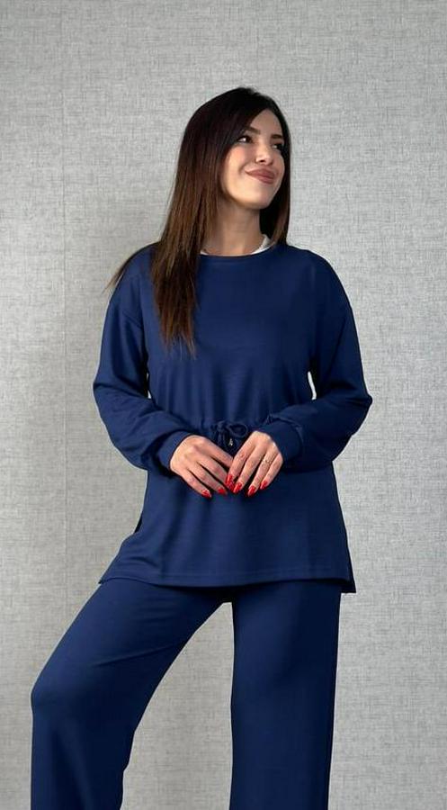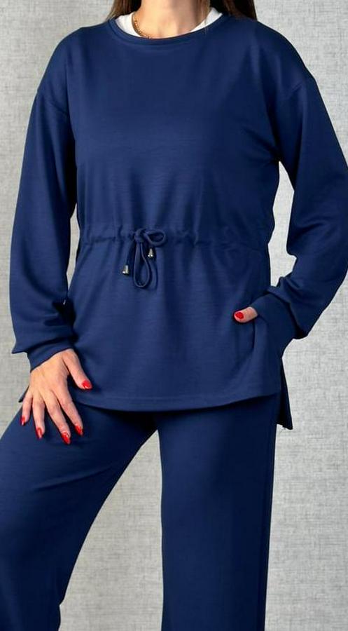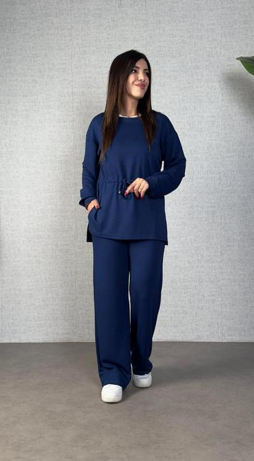 AnasayfaTüm ÜrünlerTakımlarAlt - Üst TakımUzun Kollu Bisiklet Yaka Belden Büzgülü Bağcıklı Viskon Iki Iplik Bluz Ve Pantolon Ikili Takım