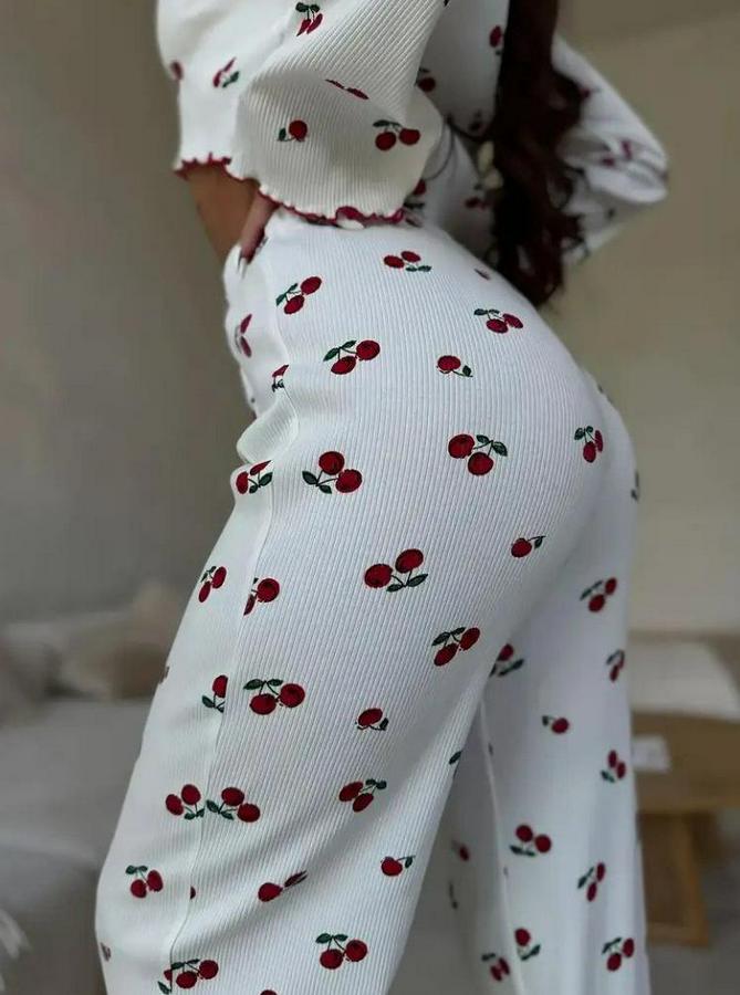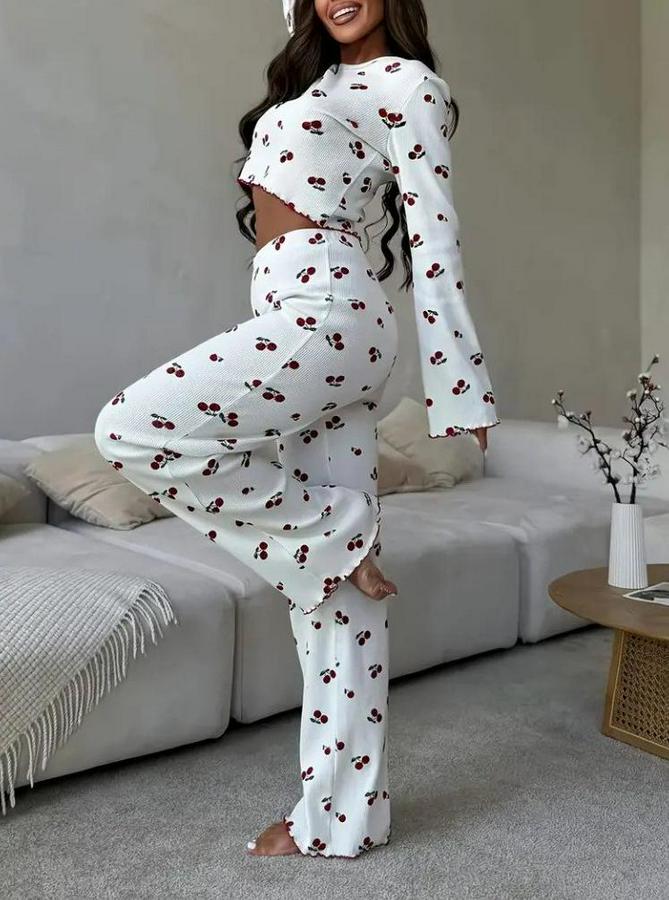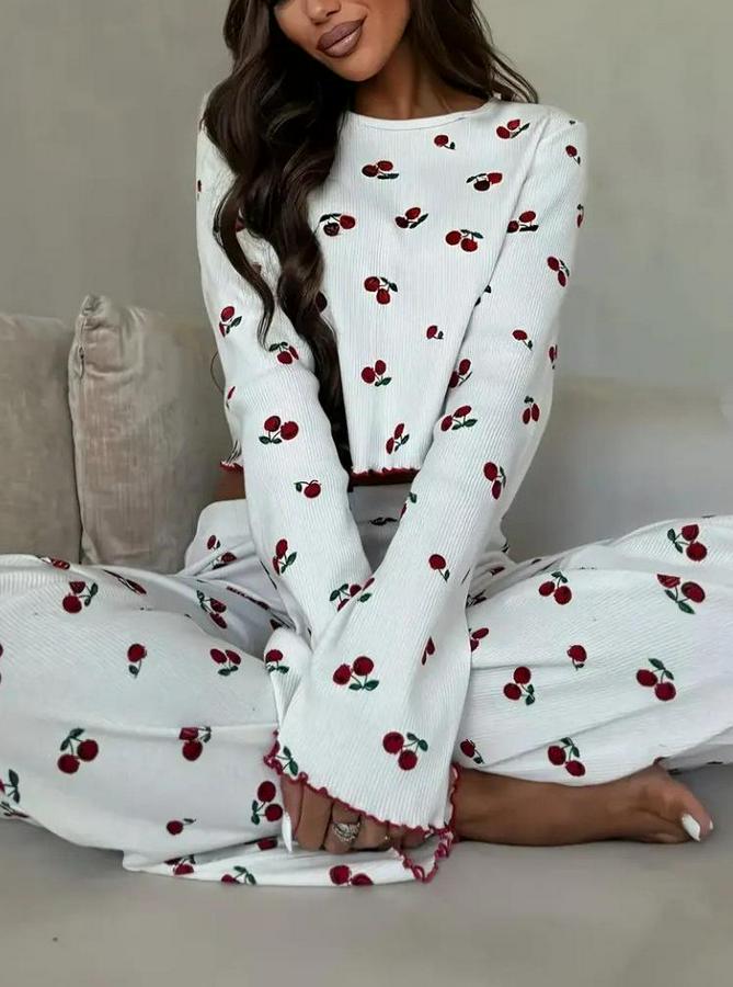 Uzun Kollu Bisiklet Yaka Desenli Burgu Bluz Ve Pijama Ikili Takım