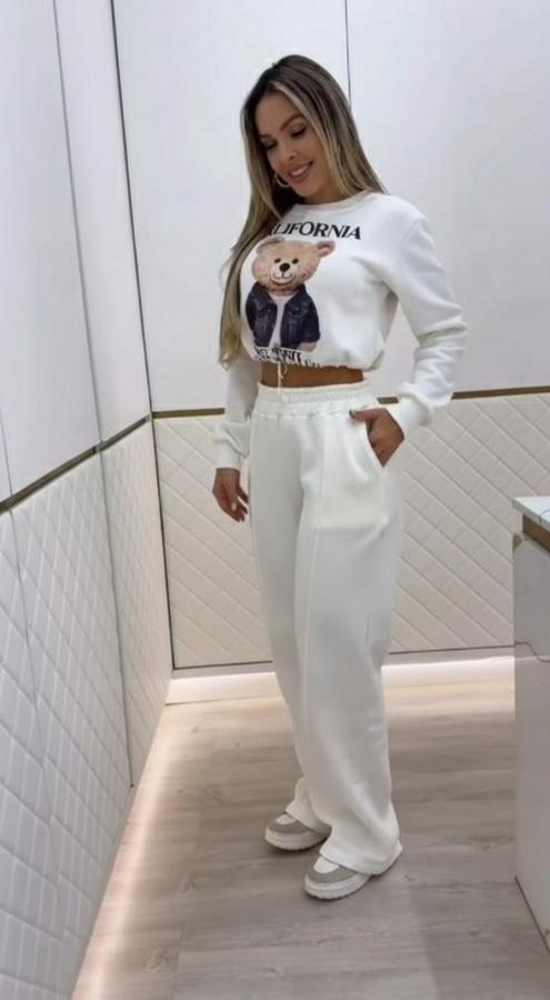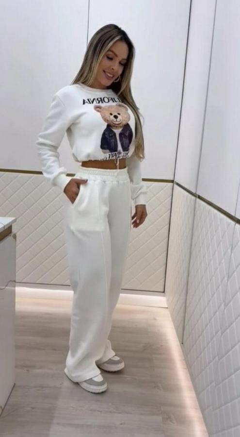 Uzun Kollu Bisiklet Yaka Desenli Iki Iplik Şardonlu Bluz Ve Pantolon Ikili Takım