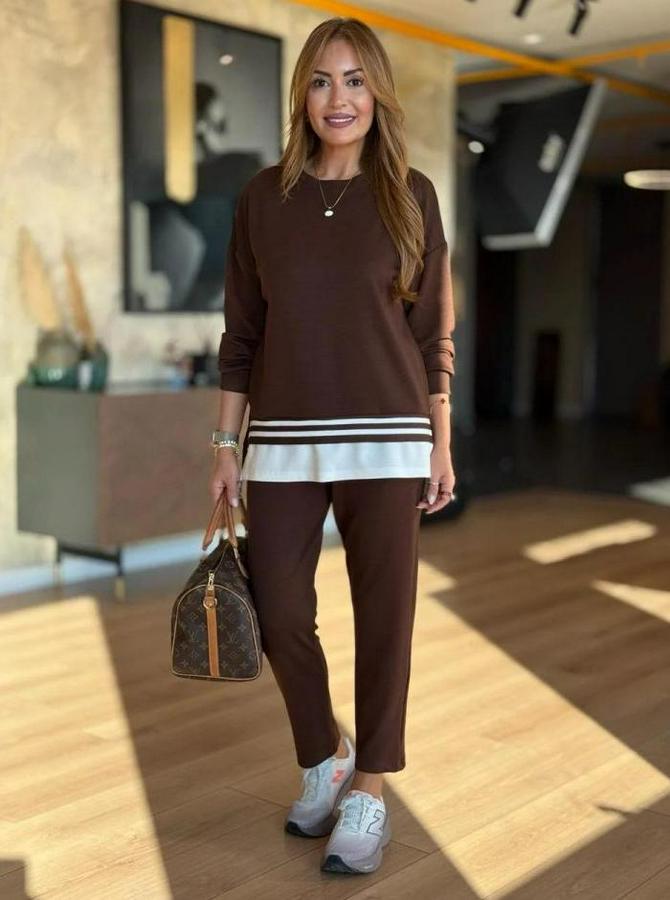 Kadın Uzun Kollu Bisiklet Yaka Ribana Detay Sweat Ve Pantolon Ikili Takım