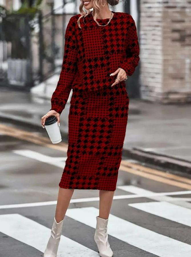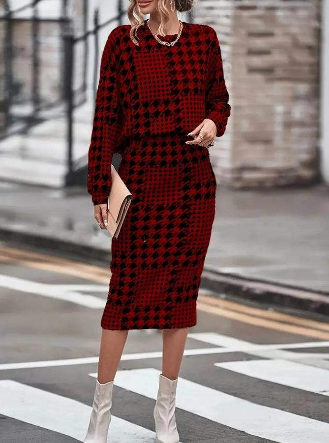 Uzun Kollu Bisiklet Yaka Şardonlu Dalgıç Bluz Ve Yırtmaçlı Midi Etek Takım