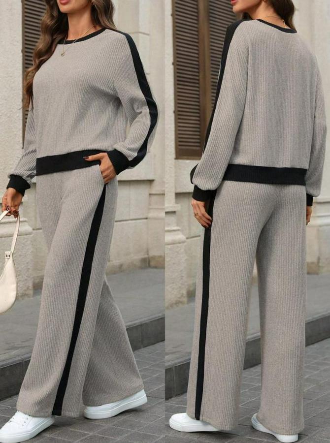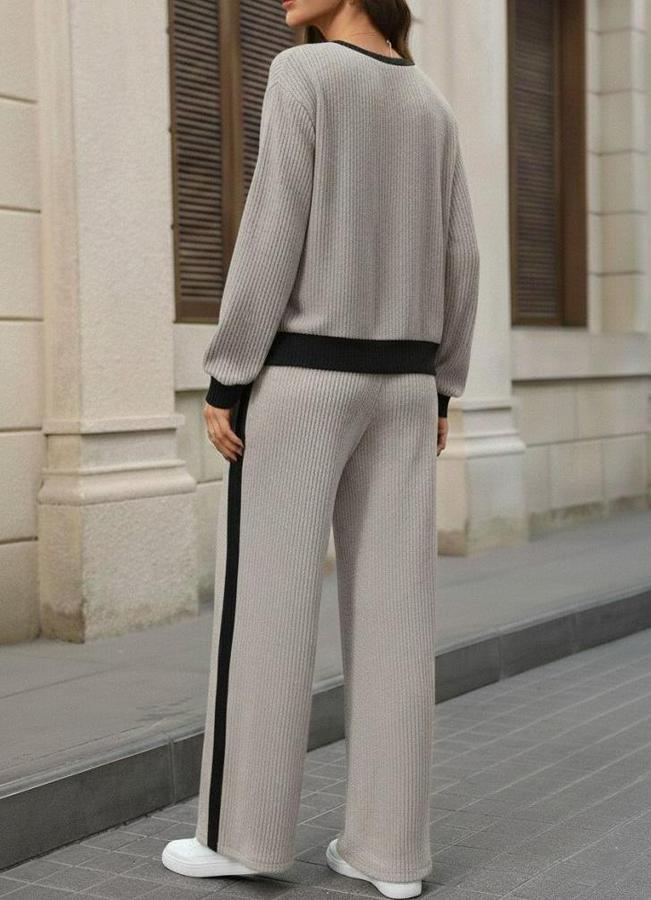 Uzun Kollu Bisiklet Yaka Şardonlu Kaşkorse Bluz Ve Pantolon Ikili Takım