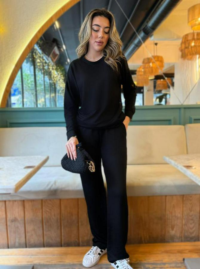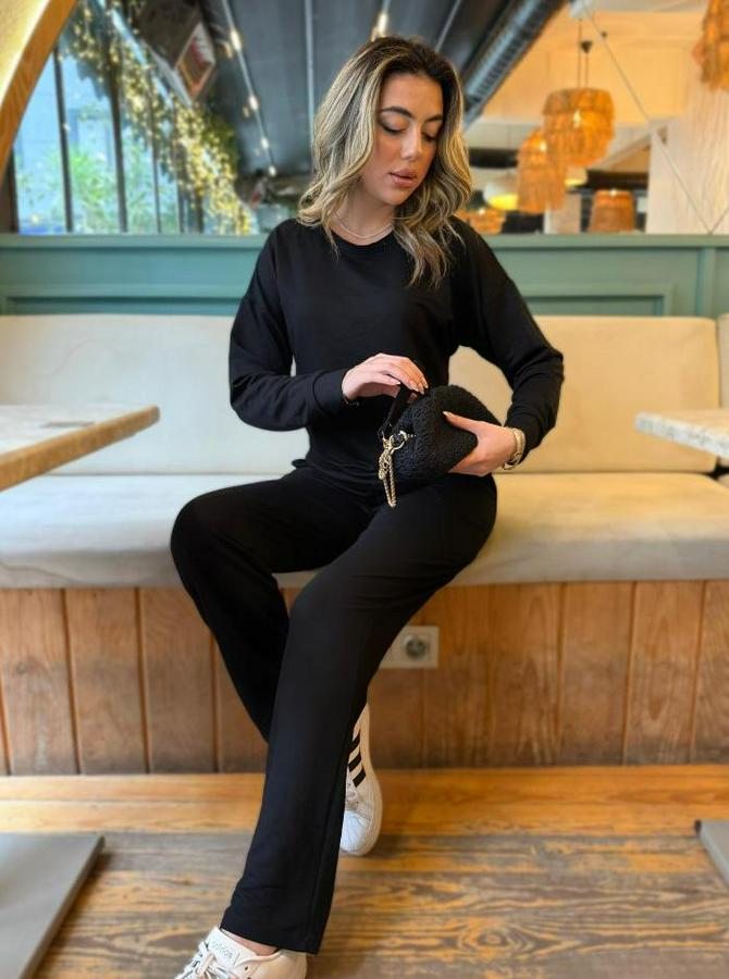 Uzun Kollu Bisiklet Yaka Viskon Iki Iplik Bluz Ve Pantolon Ikili Takım