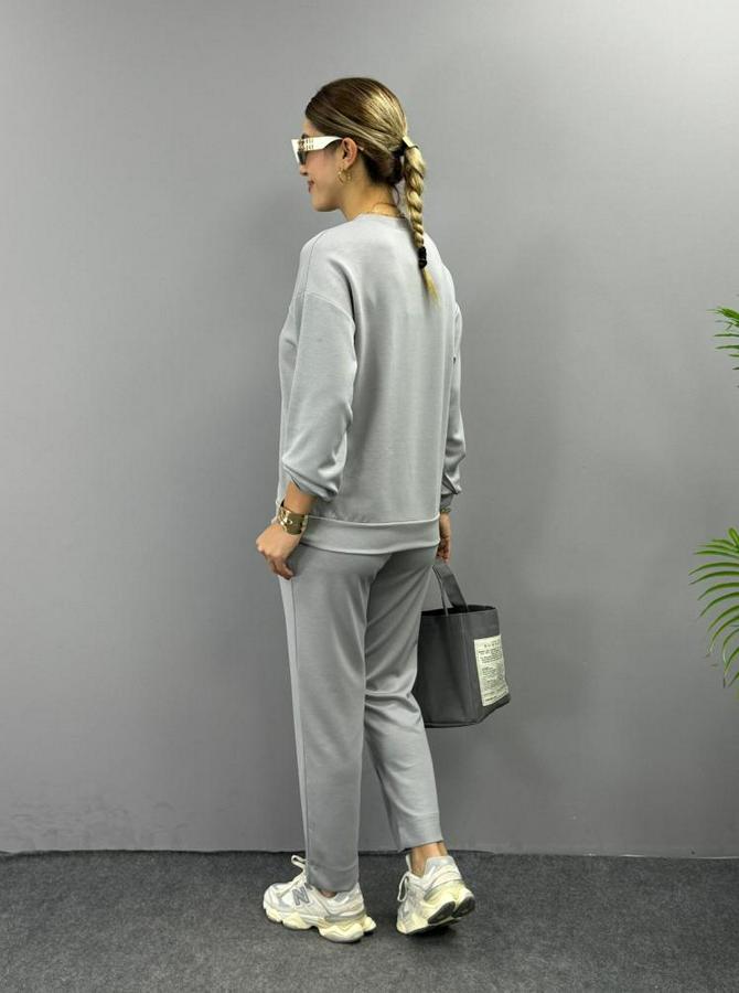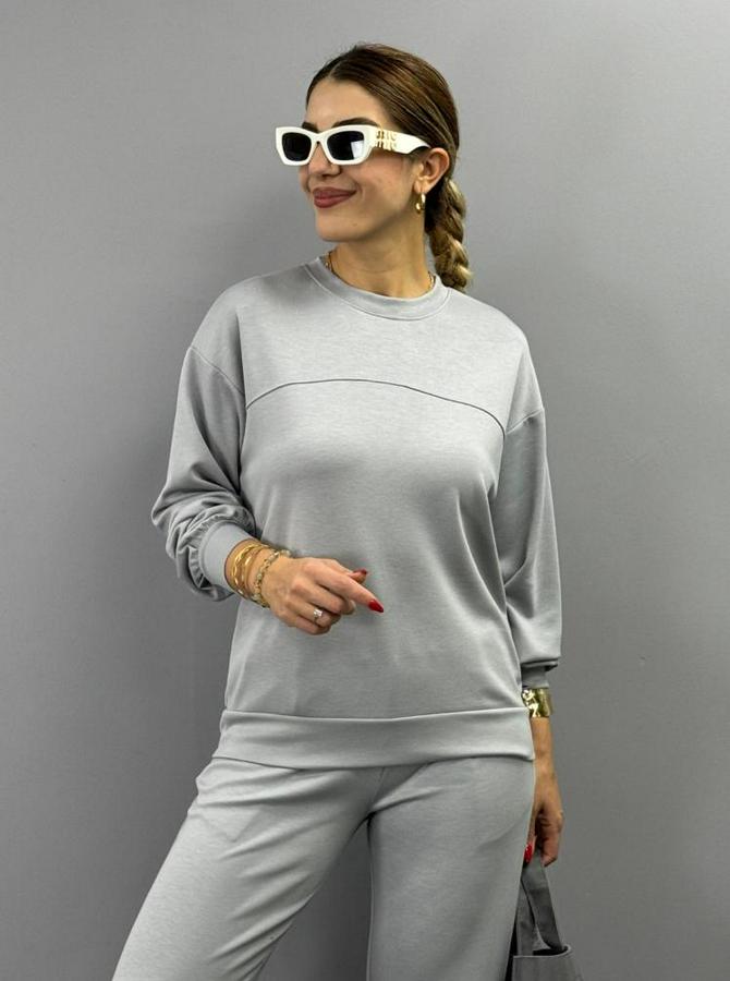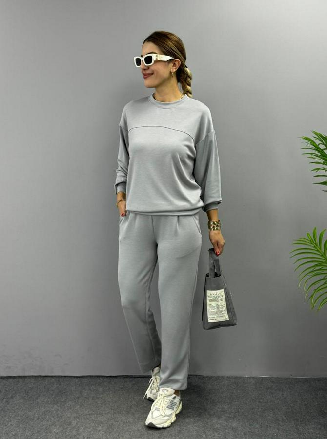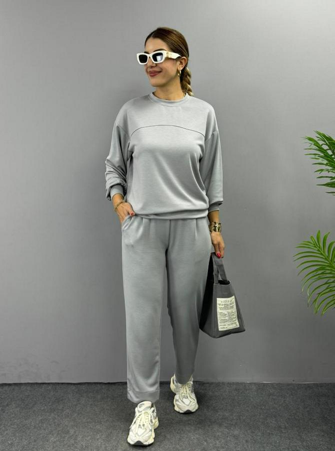 Uzun Kollu Bisiklet Yaka Viskon Iki Iplik Bluz Ve Pantolon Ikili Takım