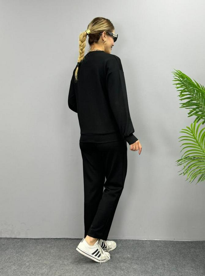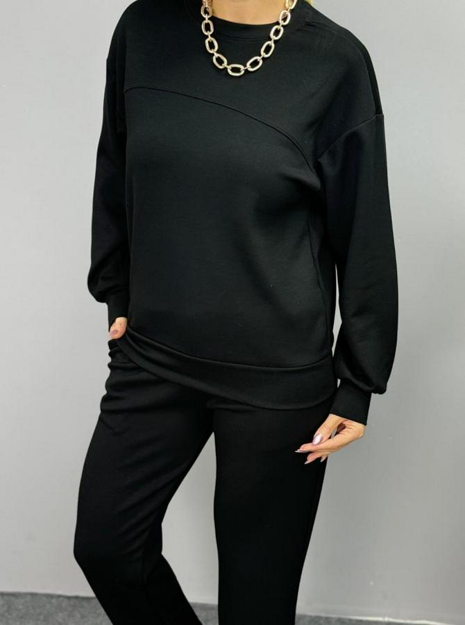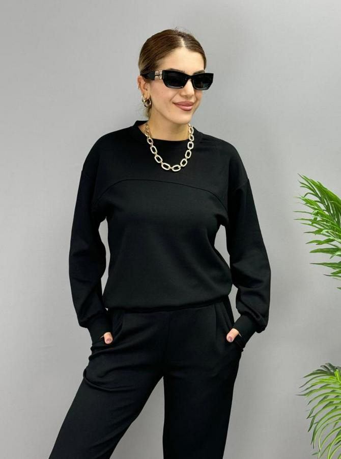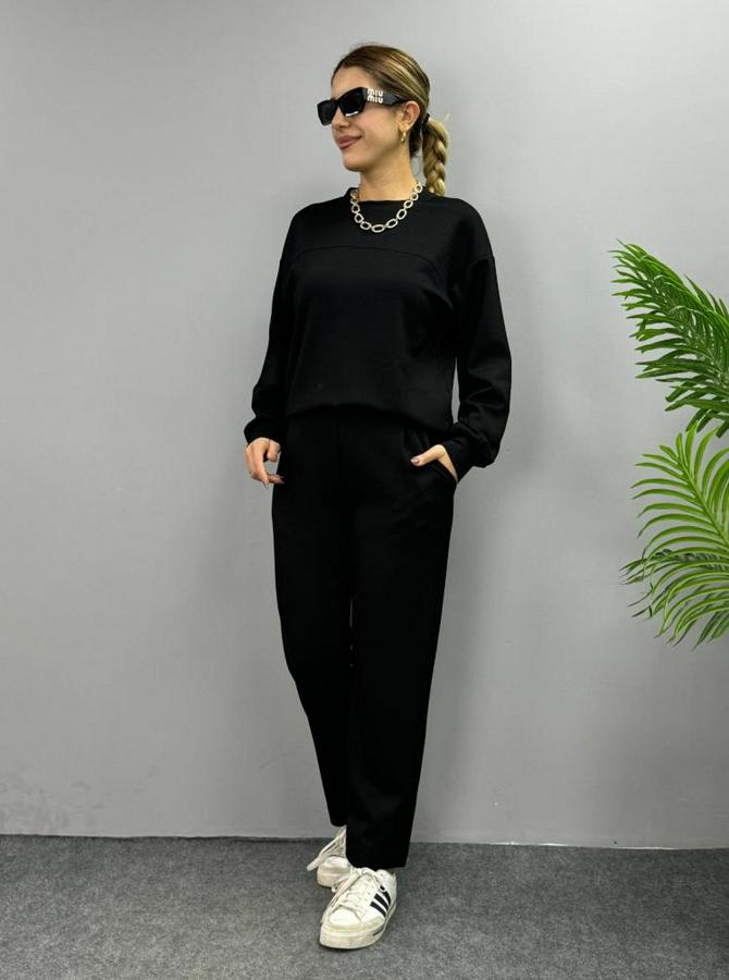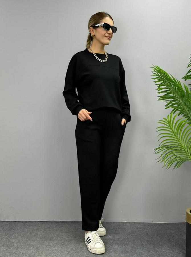 Uzun Kollu Bisiklet Yaka Viskon Iki Iplik Bluz Ve Pantolon Ikili Takım