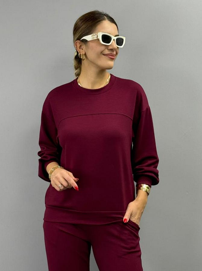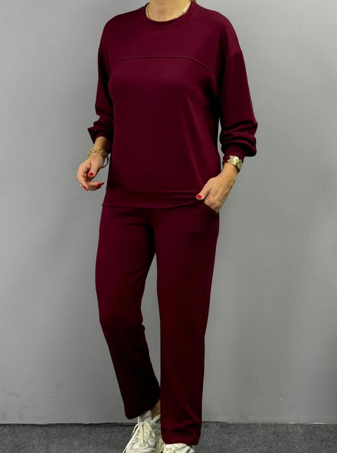 Uzun Kollu Bisiklet Yaka Viskon Iki Iplik Bluz Ve Pantolon Ikili Takım