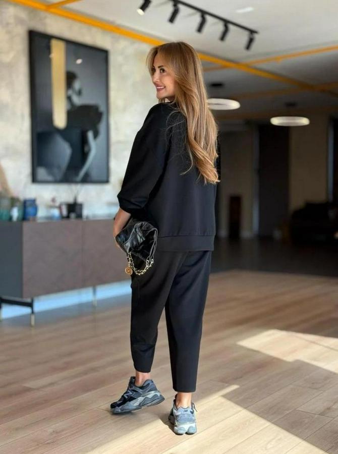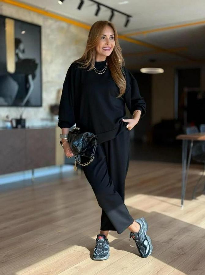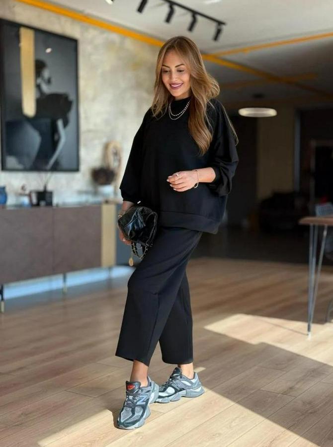 Uzun Kollu Bisiklet Yaka Viskon Iki Iplik Bluz Ve Pantolon Ikili Takım