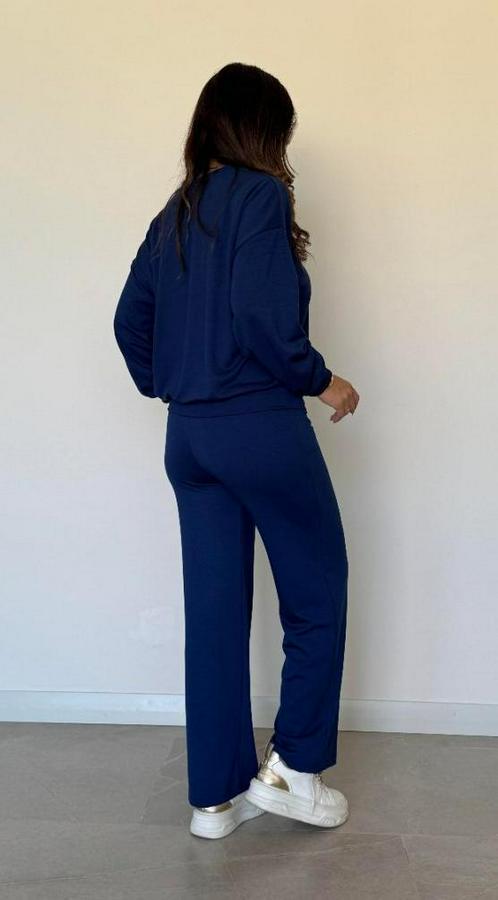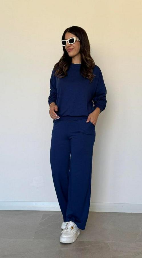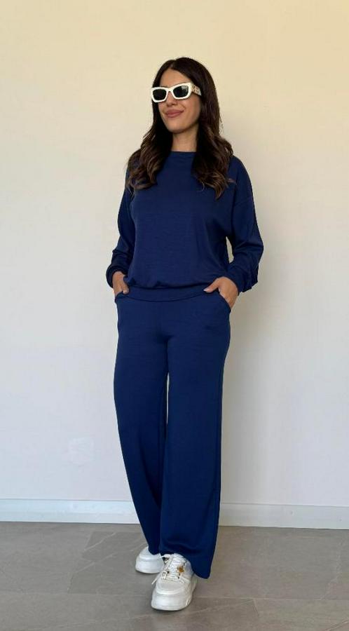 Uzun Kollu Bisiklet Yaka Viskon Iki Iplik Bluz Ve Pantolon Ikili Takım