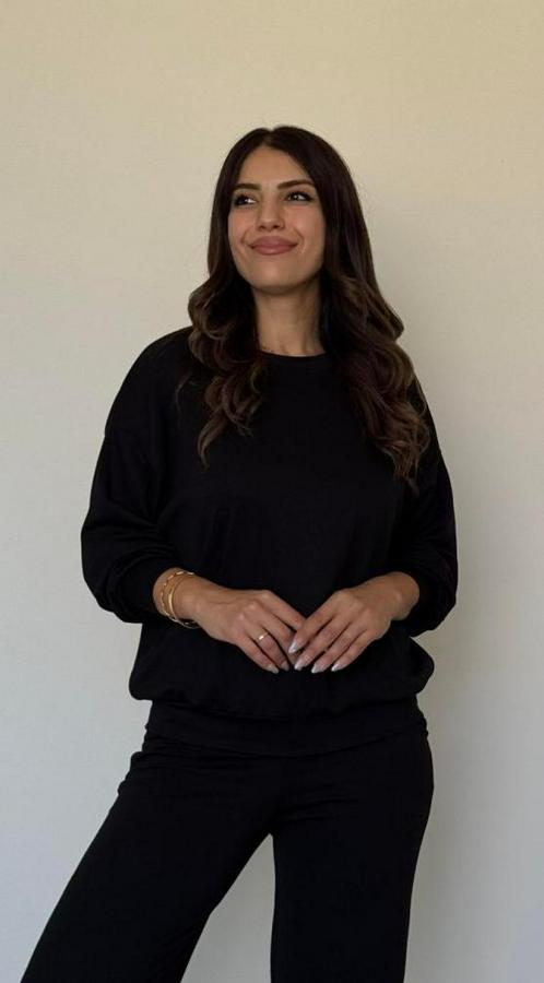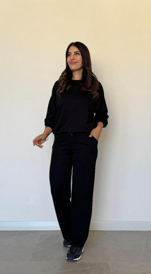 Uzun Kollu Bisiklet Yaka Viskon Iki Iplik Bluz Ve Pantolon Ikili Takım