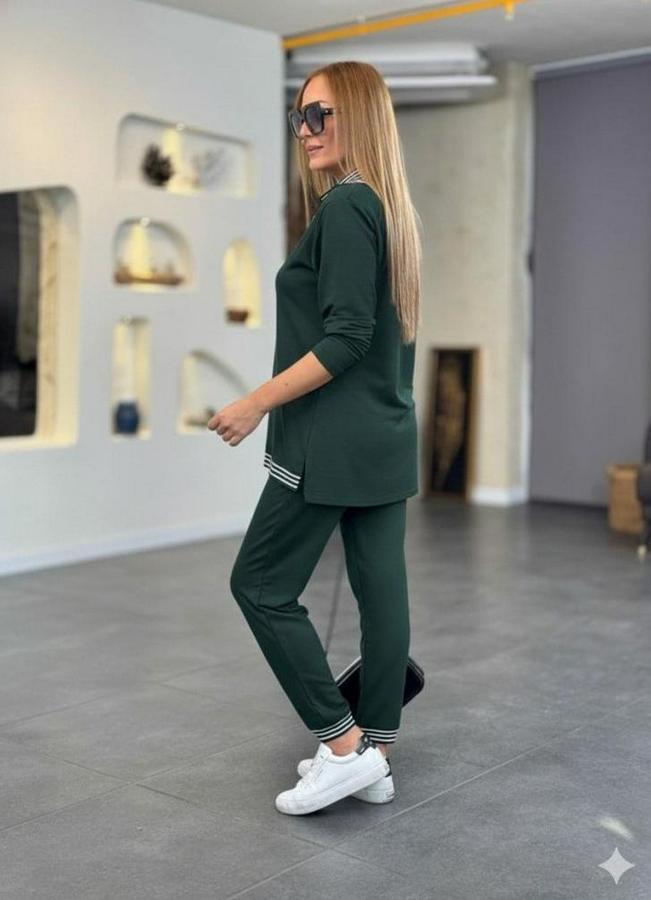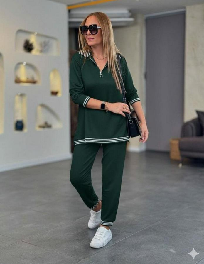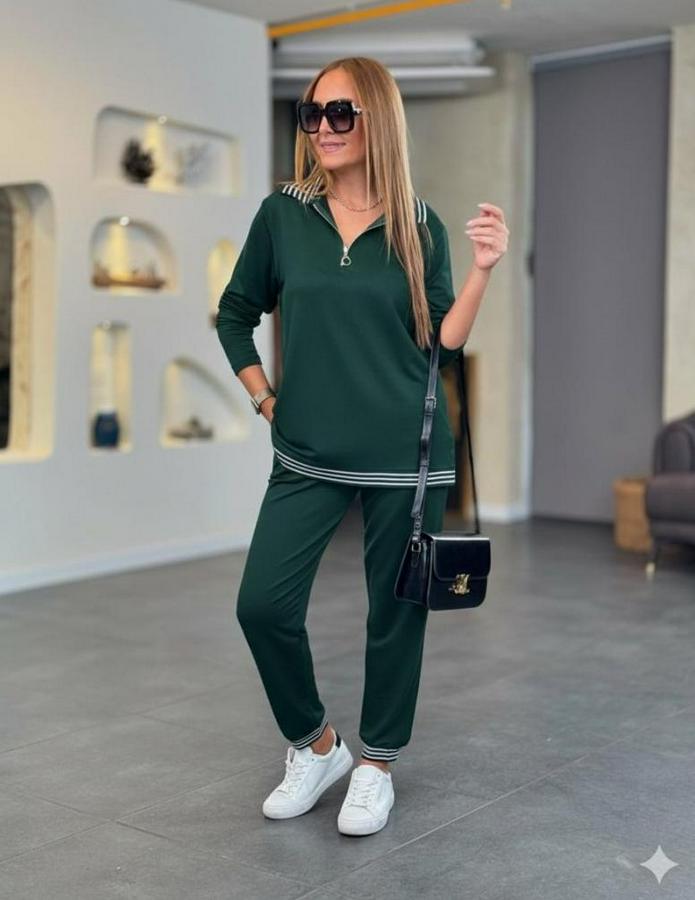 Uzun Kollu Fermuarlı Şerit Detay Desenli Alt Üst Ikili Viskon Iki Iplik Takım