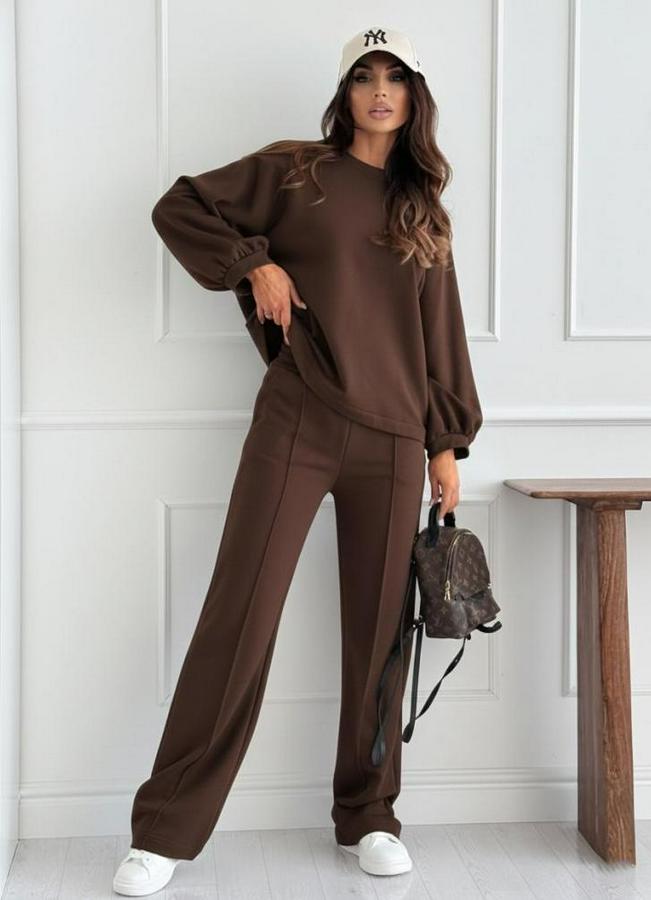Uzun Kollu Geniş Kesim Modal Bluz Ve Pantolon Ikili Takım