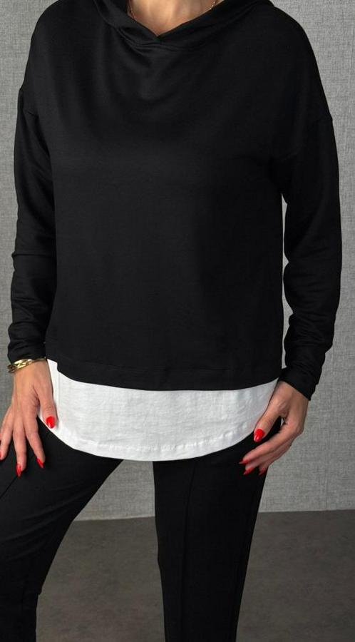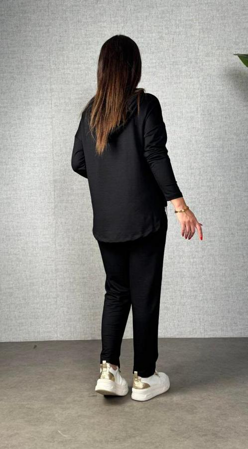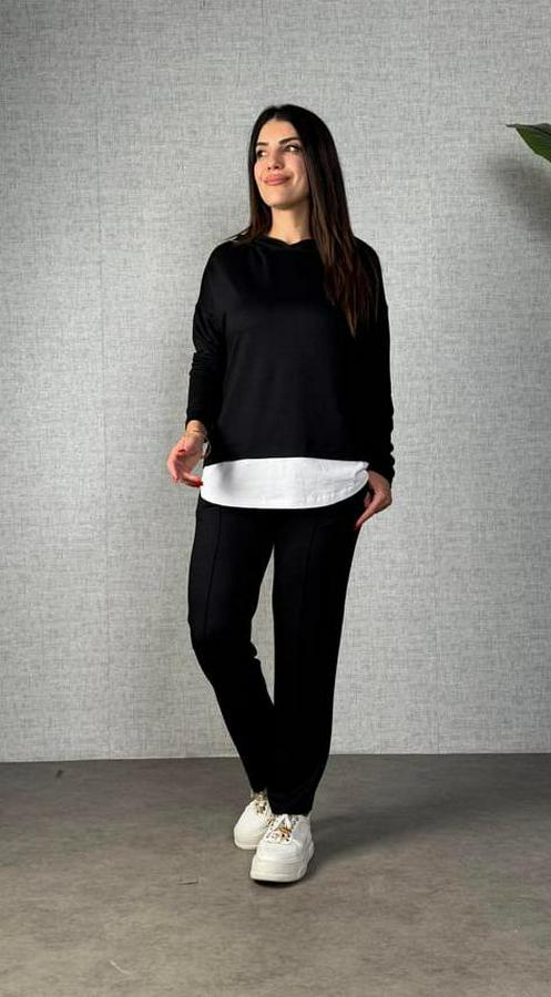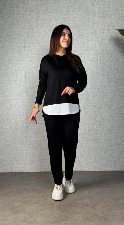 Uzun Kollu Kapşonlu Bağcıklı Viskon Iki Iplik Bluz Ve Pantolon Ikili Takım