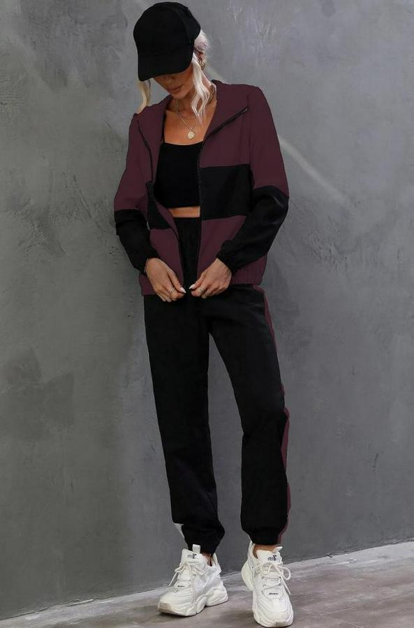 Kadın Uzun Kollu Kapşonlu önden Fermuarlı Viskon Iki Iplik Bluz Ve Pantolon Ikili Takım