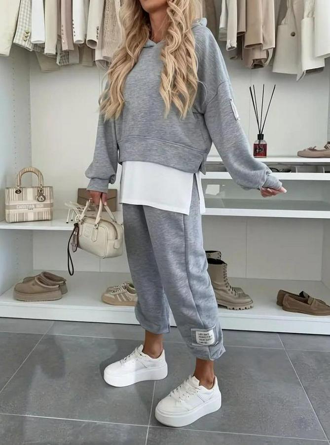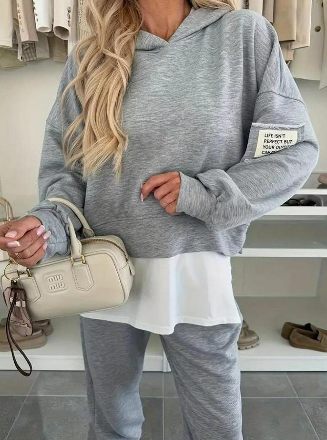 Uzun Kollu Kapşonlu Viskon Iki Iplik Bluz Ve Pantolon Ikili Takım