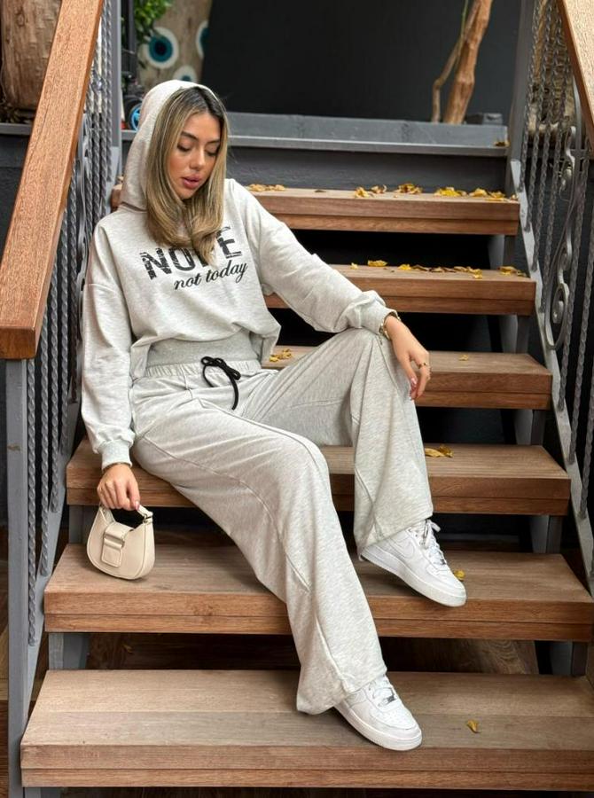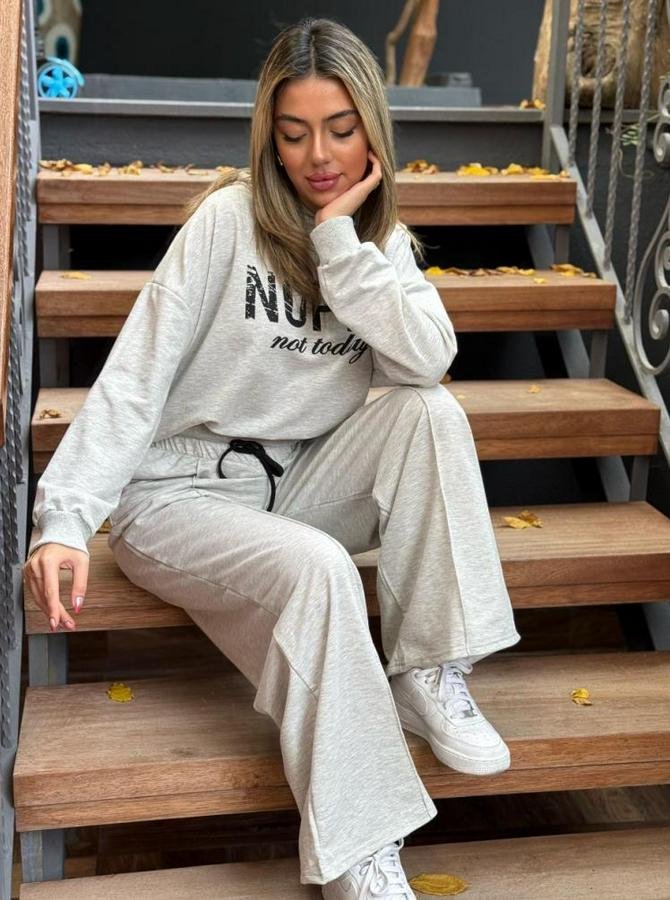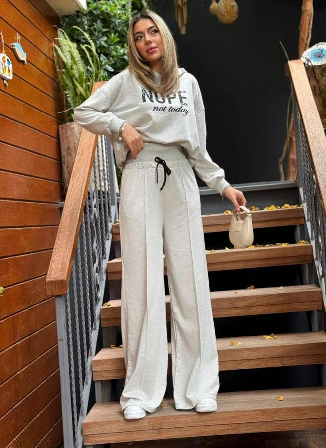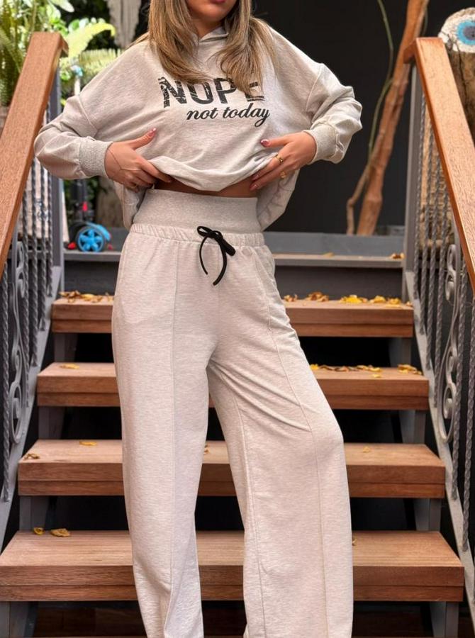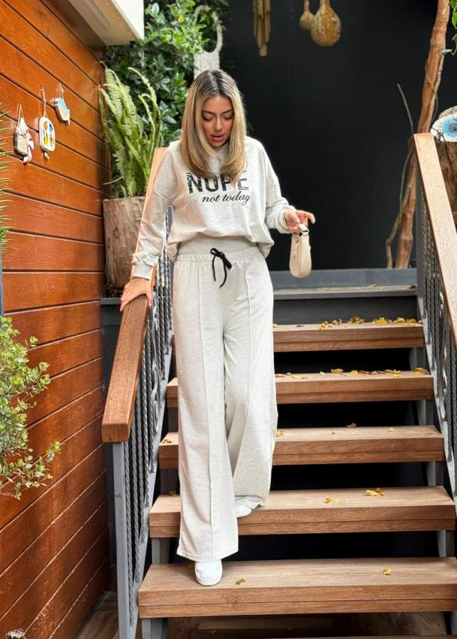Kadın Uzun Kollu Nope Baskılı Beli Ribanalı Ikili Takım