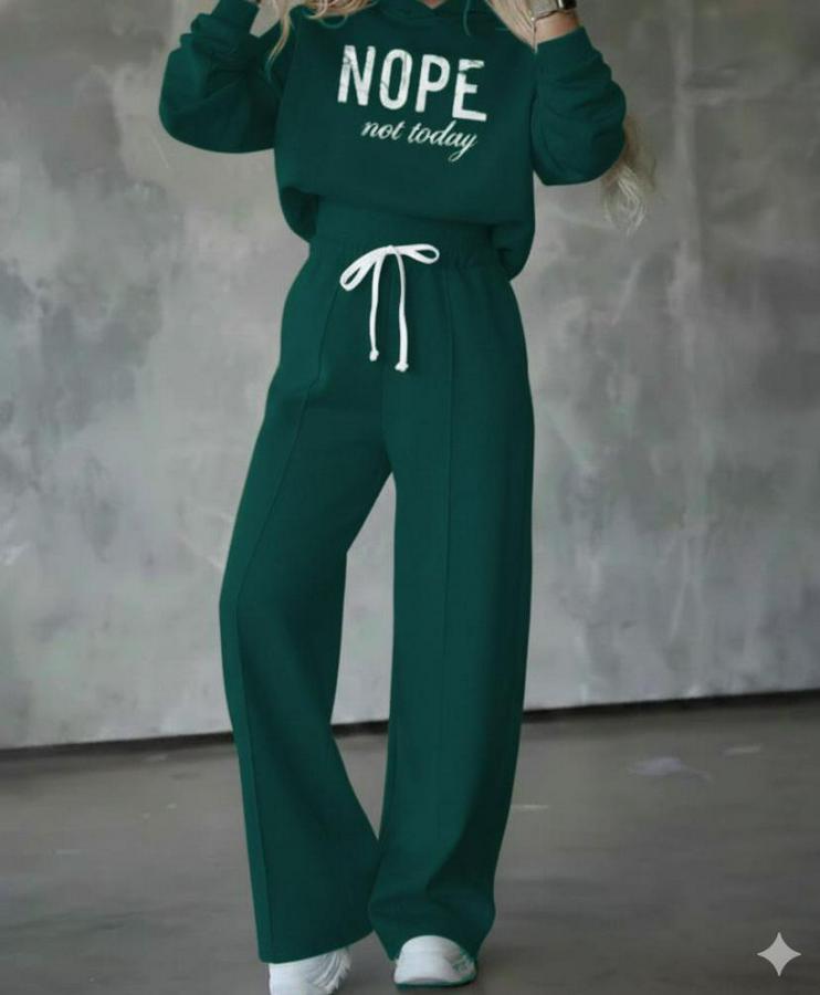 Kadın Uzun Kollu Nope Baskılı Beli Ribanalı Ikili Takım