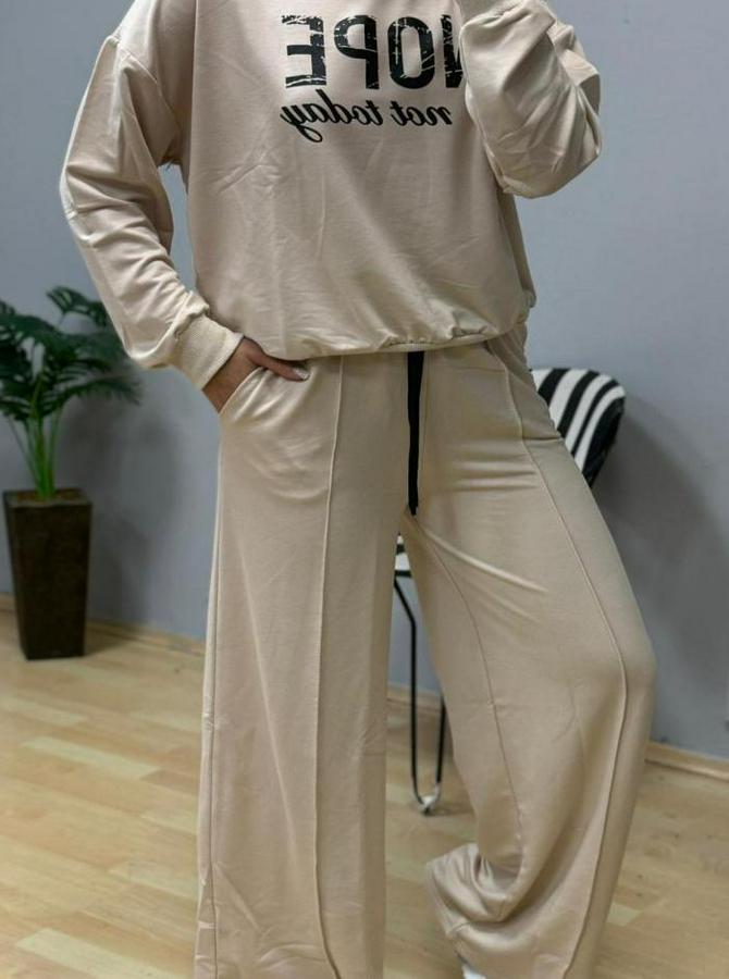 Kadın Uzun Kollu Nope Baskılı Beli Ribanalı Ikili Takım