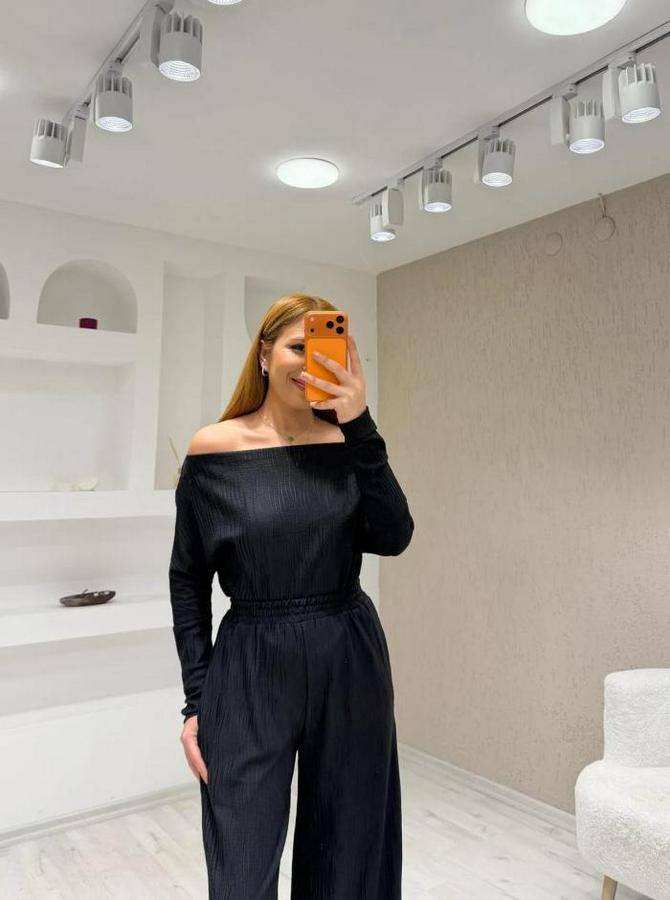 Kadın Uzun Kollu Omuz Dekolteli Bluz Ve Palazzo Pantolon Ikili Takım