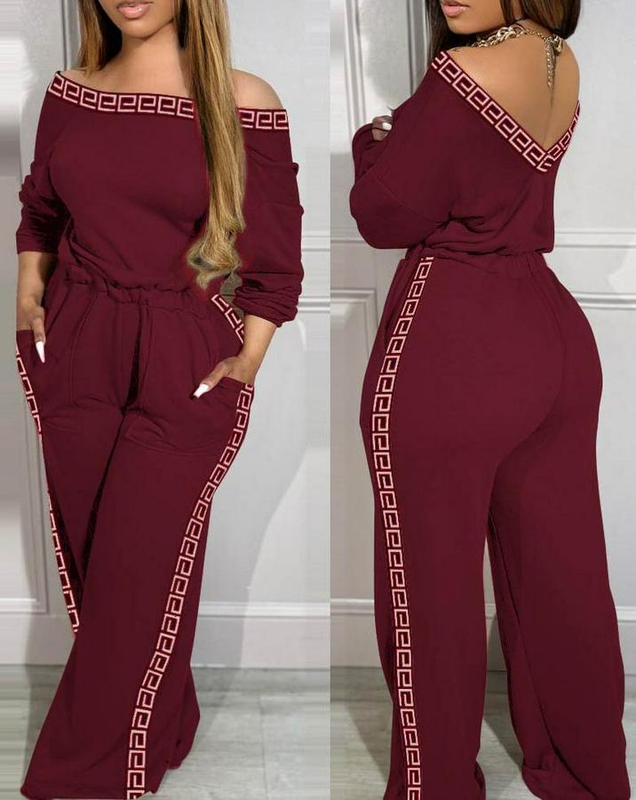 AnasayfaTüm ÜrünlerTakımlarAlt - Üst TakımUzun Kollu Omuzlardan Açık Beli Lastikli Cepli Şerit Desenli Viskon Iki Iplik Tulum