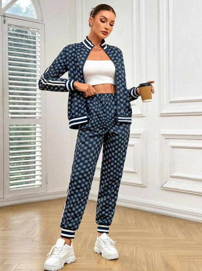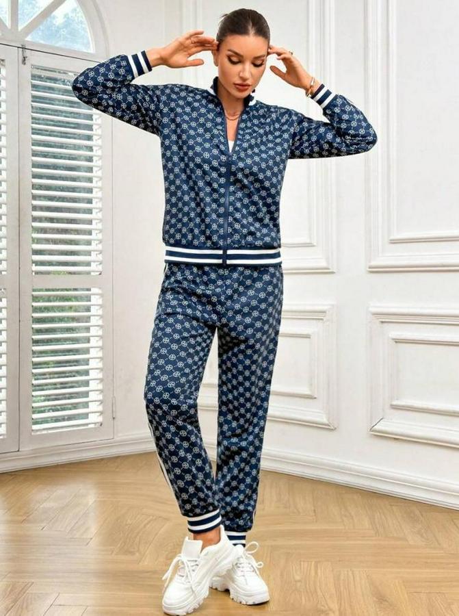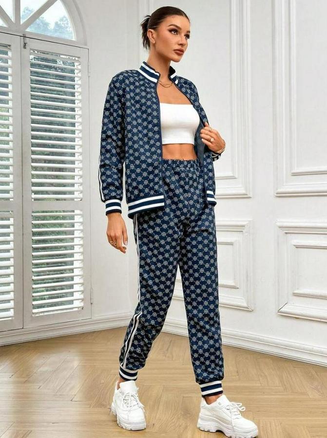 AnasayfaTüm ÜrünlerTakımlarAlt - Üst TakımUzun Kollu Önden Fermuarlı Desenli Iki Iplik Bluz Ve Pantolon Ikili Takım