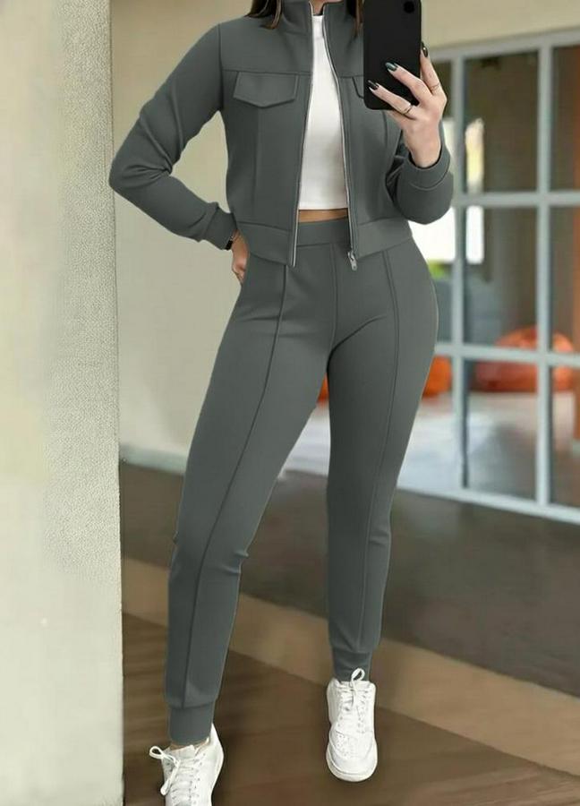 Kadın Uzun Kollu önden Fermuarlı Kısa Modal Ceket Ve Pantolon Ikili Takım