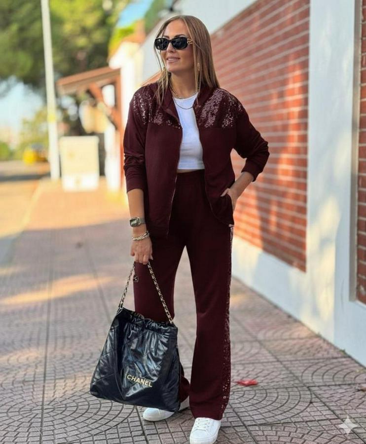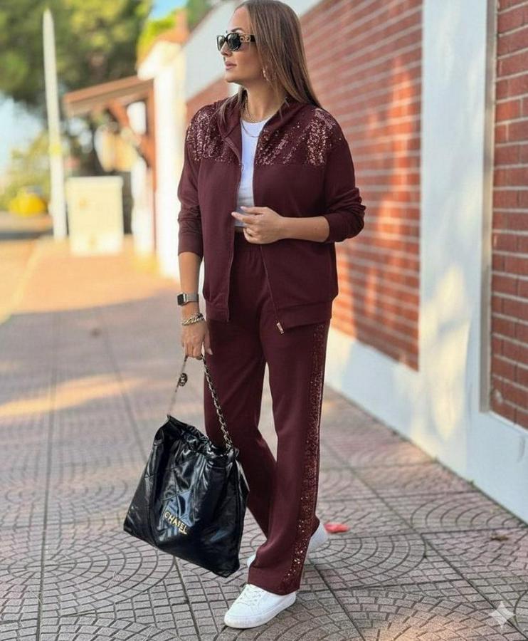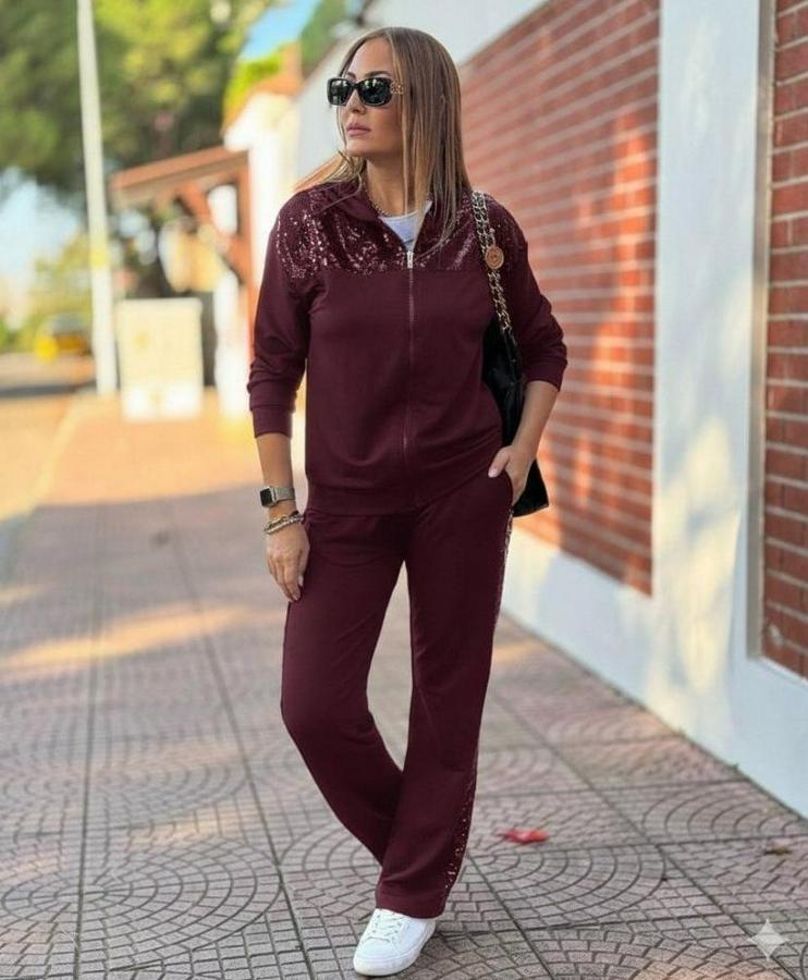 Kadın Uzun Kollu önden Fermuarlı Pul Payetli Alt üst Viskon Iki Iplik Takım