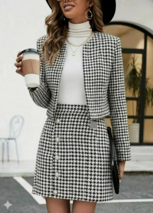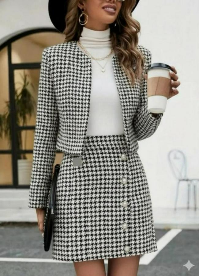 AnasayfaTüm ÜrünlerTakımlarAlt - Üst TakımUzun Kollu Önü Açık Dokuma Ceket Ve Mini Etek Ikili Takım