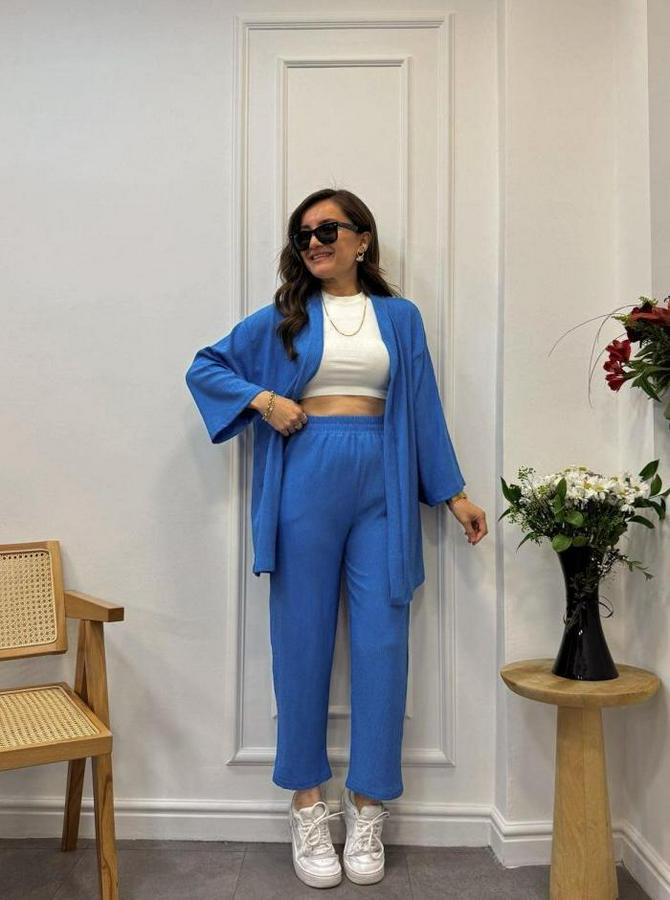 Uzun Kollu Önü Açık Dokuma Ceket Ve Pantolon Ikili Takım