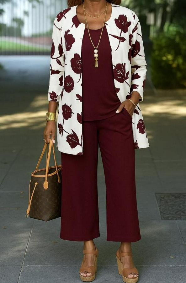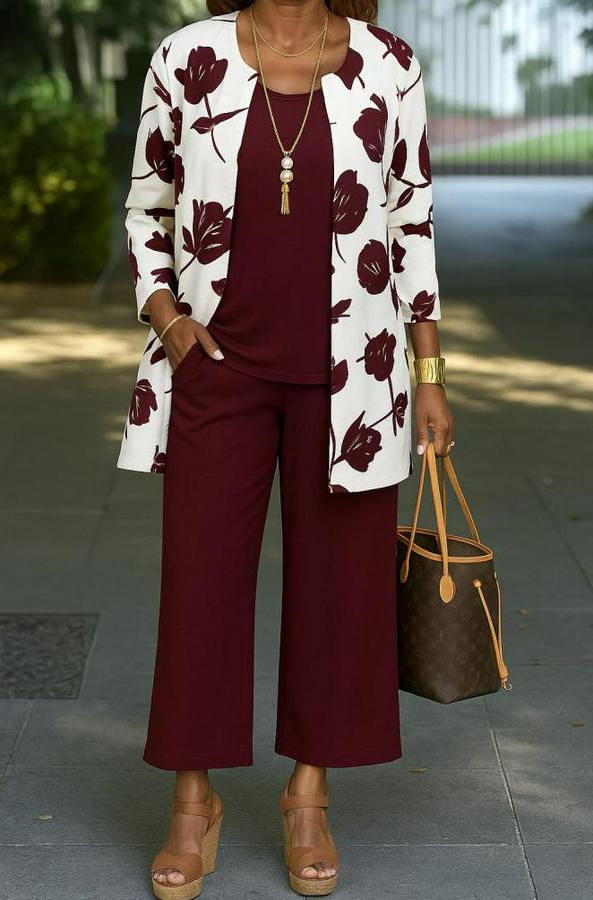 AnasayfaTüm ÜrünlerTakımlarAlt - Üst TakımUzun Kollu Önü Açık Modal Ceket Kolsuz Viskon Iki Iplik Bluz Ve Pantolon Üçlü Takım