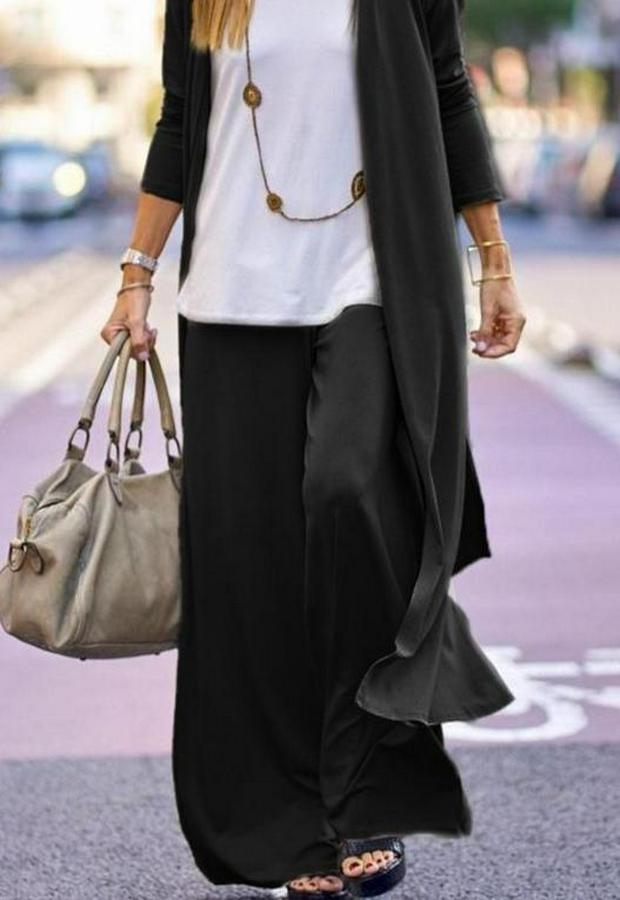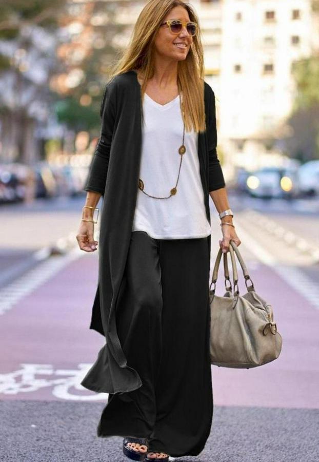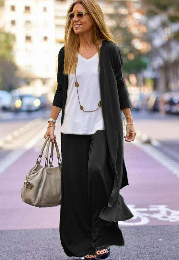 Uzun Kollu Önü Açık Viskon Ceket Ve Pantolon Ikili Takım