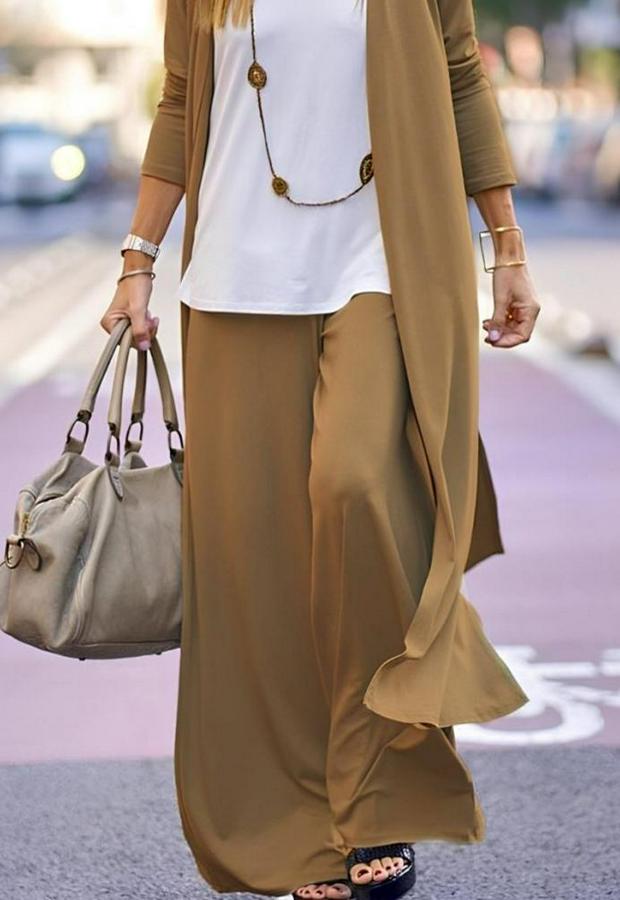 Uzun Kollu Önü Açık Viskon Ceket Ve Pantolon Ikili Takım