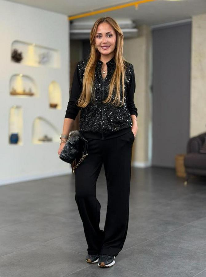Kadın Uzun Kollu Pul Payet Ve Fermuar Detay Ikili Takım