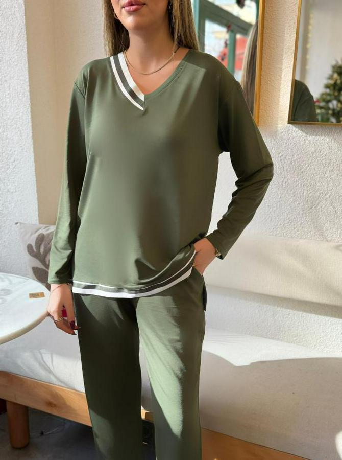 Uzun Kollu Ribana Detay Viskon Iki Iplik Ikili Takım