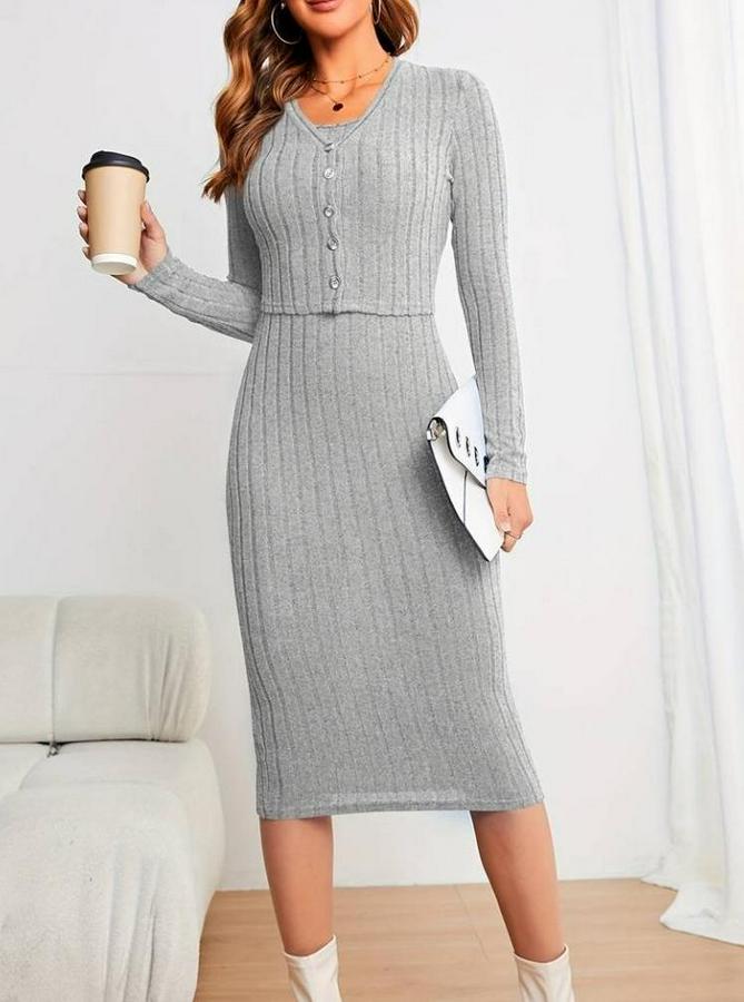 Kadın Uzun Kollu şardonlu Kaşkorseönü Düğmeli Mini Boy Elbise Ikili Takım