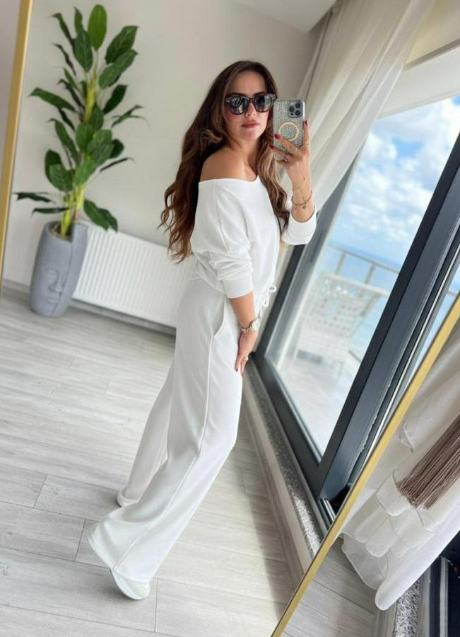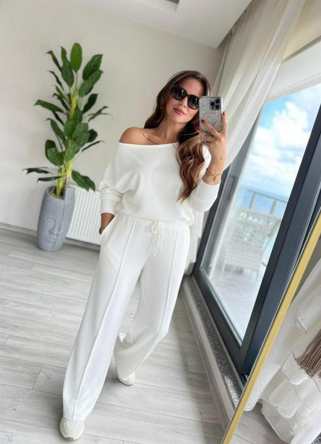Kadın Uzun Kollu Tek Omuzdan Açık Dalgıç Bluz Ve Pantolon Ikili Takım