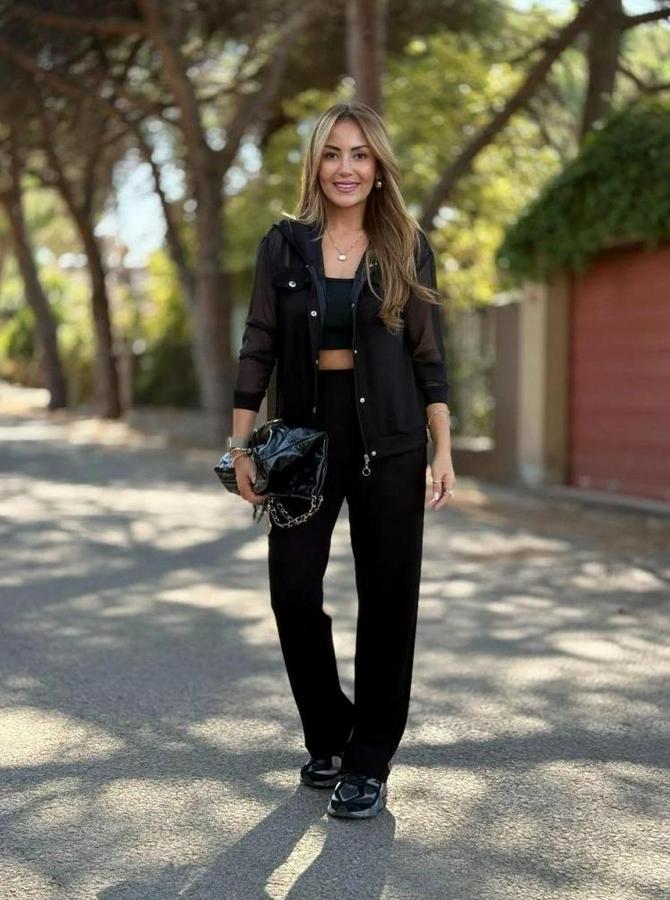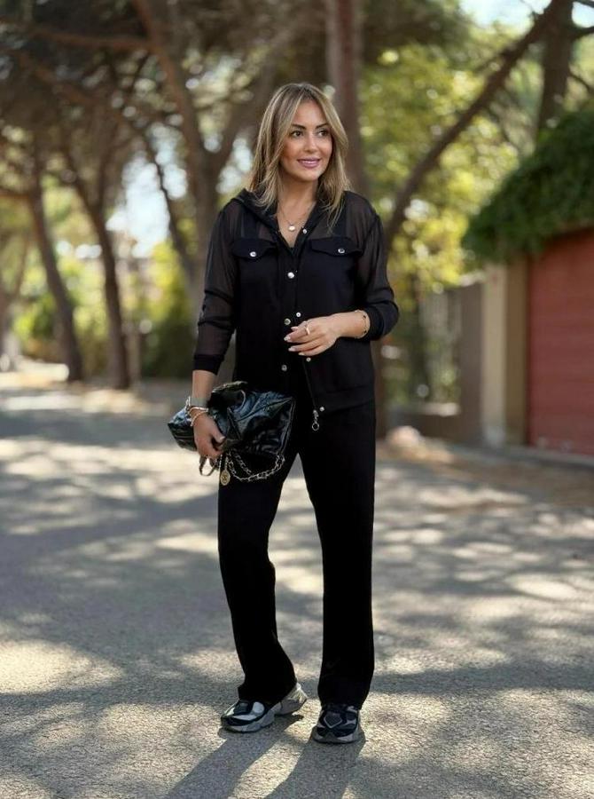 Uzun Kollu Tül Detaylı Önü Düğmeli Viskon Iki Iplik Ceket Ve Pantolon Ikili Takım