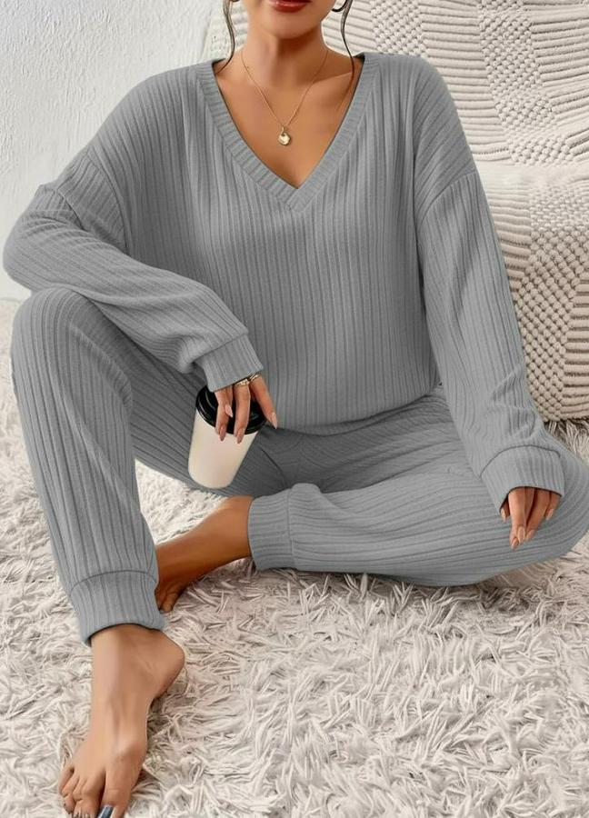 Uzun Kollu V Yakalı Kaşkorse Bluz Ve Pantolon Ikili Takım
