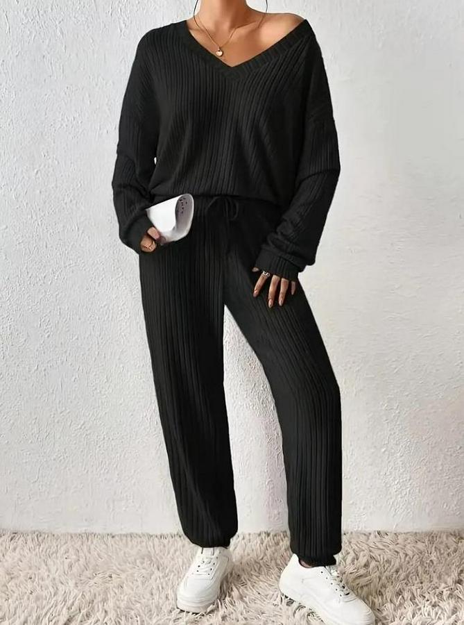 Kadın Uzun Kollu V Yakalı Kaşkorse Bluz Ve Pantolon Ikili Takım