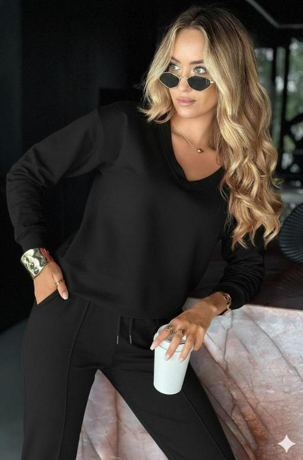 Uzun Kollu V Yakalı Viskon Iki Iplik Bluz Ve Pantolon Ikili Takım